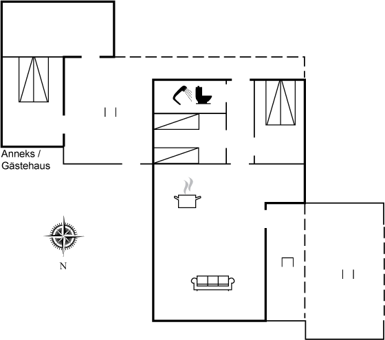 Nicht weit vom kinderfreundlichen Badestrand entfernt liegt dieses Ferienhaus auf einem eingezäunten Grundstück mit Platz für Aktivitäten im Freien. Zum Haus gehören sowohl offene als auch überdachte Terrassen sowie ein Gästehaus, das mit Doppelbett eingerichtet ist.