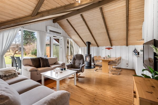 Das Haus liegt ungestört auf einem großen Naturgrundstück und verfügt über mehrere gute, teilweise überdachte Terrassenbereiche. Von hier aus kannst du die schöne Umgebung bei einer Tasse Kaffee oder einem Glas Wein genießen, und zu jeder Tageszeit findest du ein windgeschütztes Plätzchen, an dem du die Sonne in Ruhe genießen kannst.
