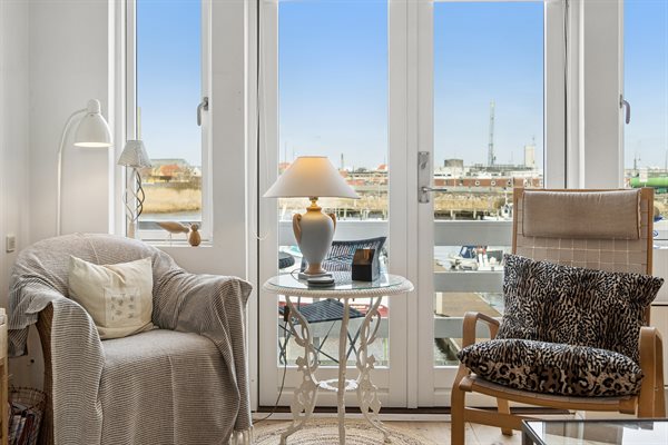 Mitten im Yachthafen von Grenaa, nur wenige Meter vom Wasser entfernt, liegt diese schöne Ferienwohnung auf zwei Etagen, erbaut im Jahr 2005.