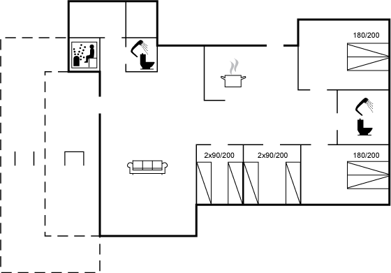 Das Haus ist hell und geräumig, mit einem großen Wohnbereich, in dem Küche, Essplatz und Wohnzimmer ineinander übergehen. Hier habt ihr die perfekte Möglichkeit, zusammen zu sein – egal ob beim Kochen, Lesen oder einfach beim Entspannen. Die Kinder können sich mit Büchern und Spielzeug beschäftigen, während ihr Erwachsenen eine ruhige Auszeit im Whirlpool oder in der Sauna genießt.