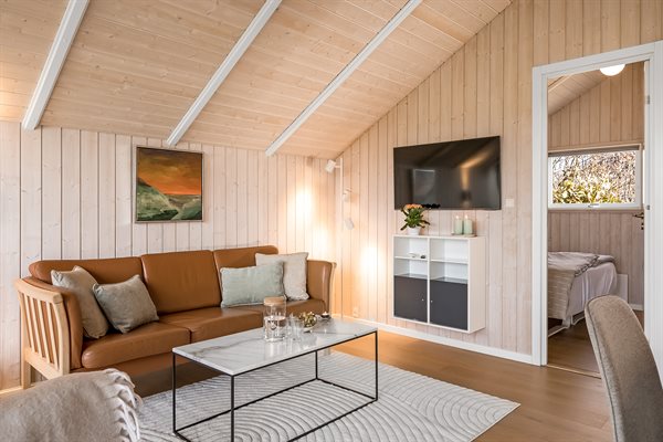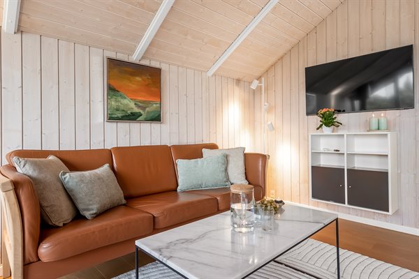 Gemütliches und modernisiertes Ferienhaus mit einer neueren Küche und Möbeln, die zur richtigen Atmosphäre und Gemütlichkeit beitragen.
