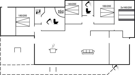 Das Ferienhaus verfügt über vier Schlafzimmer, die alle in einem leicht versetzten Bereich zum Wohnraum liegen, was eine praktische Aufteilung von Wohn- und Schlafbereichen ermöglicht. Eines der Zimmer bietet Platz für vier Personen, und als besonderes Detail gibt es ein gemütliches offenes Obergeschoss, der vom versetzten Geschoss aus zugänglich ist. Hier können die Kinder ihre eigene kleine Höhle haben, oder du kannst das offene Obergeschoss als zusätzliche Schlafgelegenheit nutzen. Nach einem Tag am kinderfreundlichen Strand von Binderup, der nur wenige Schritte entfernt liegt, kannst du dich im hauseigenen Whirlpool für zwei Personen oder in der Sauna verwöhnen – hier steht die Entspannung im Mittelpunkt.