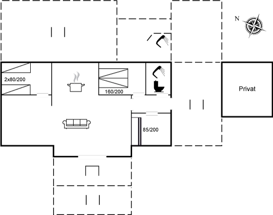 In der Nähe des Hauses führt ein Weg hinunter zum Strand, wo im Sommerhalbjahr einen Badesteg aufgebaut ist.