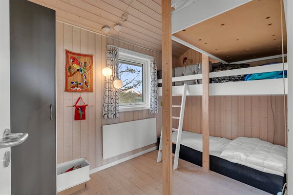 Es gibt mehrere Schlafmöglichkeiten, denn neben den Schlafzimmern gibt es sowohl ein offenes Obergeschoss als auch ein Gästehaus. Das Gästehaus ist mit zwei Einzelbetten ausgestattet, zwischen denen du eine Platte mit zusätzlicher Matratze legen kannst, sodass Platz für 3 Personen entsteht. Eines der Schlafzimmer ist mit einem Einzelbett und zwei versetzten Etagenbetten eingerichtet – etwas, das bei den Kindern sehr beliebt ist.