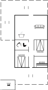 Gemütliches Ferienhaus auf einem Gartengrundstück nur 400 m von schönem Sandstrand mit guten Angelmöglichkeiten entfernt gelegen.