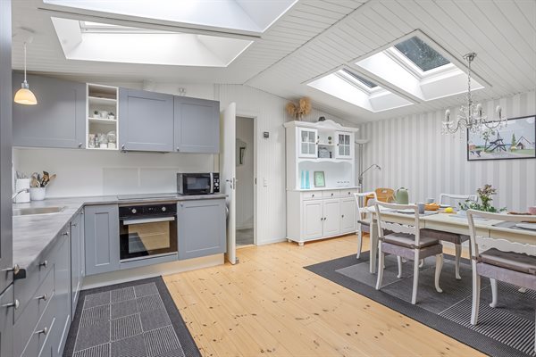 Dieses Ferienhaus liegt etwa 400 Meter von einem der besten Badestrände Dänemarks, in Marielyst, entfernt. Zum Haus gehört eine besonders schöne Holzterrasse, die teilweise überdacht ist und über Gartenmöbel, Sonnenliegen und einen Grill verfügt. Hier kannst du Stunden im Freien verbringen – mit einem guten Buch oder beim Stricken – auch wenn das Wetter einmal nicht mitspielt. Der gemütliche, rundum eingezäunte Garten ist ideal für Familien mit Kindern, und für die kleinen Feriengäste gibt es Schaukel und Fußballtor.