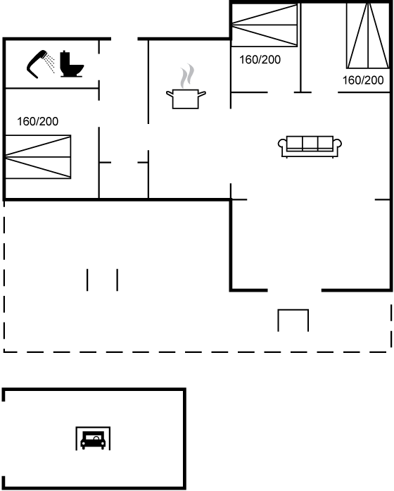 Im Ferienhaus gibt es eine gemütliche Wohnküche mit einer neuen, modernen Küche, und von hier gelangst du auf die südlich ausgerichtete Terrasse, die teilweise überdacht ist.