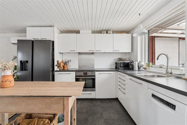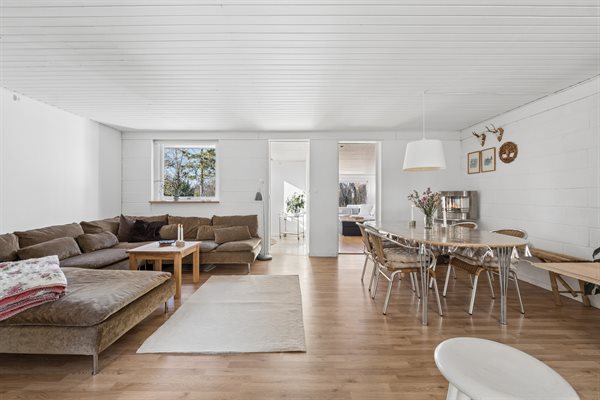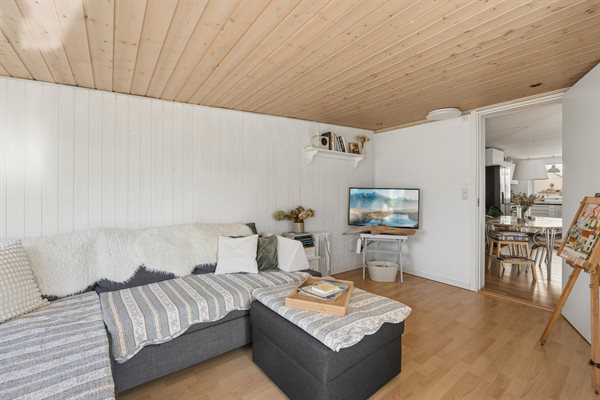 Im Inneren ist das Haus im klassischen Ferienhausstil eingerichtet, mit einem gemütlichen Wohnzimmer und einer einladenden Atmosphäre, die zu Brettspielen, gemeinsamen Kochen und Entspannung nach einem Tag am Strand einlädt. Der kurze Fuß- oder Radweg zum Wasser macht spontane Bäder, lange Spaziergänge an der Küste entlang oder den Sonnenuntergang am Meer möglich.