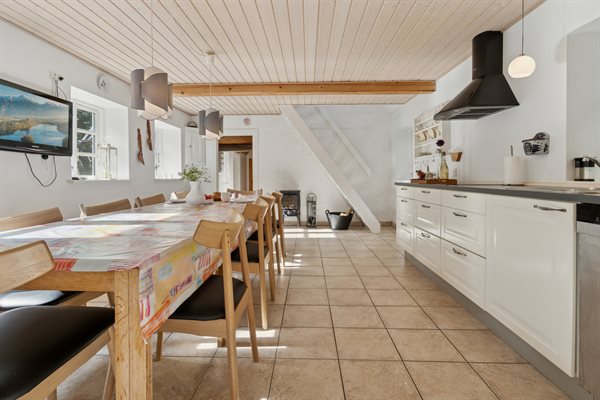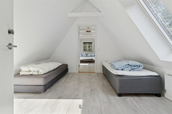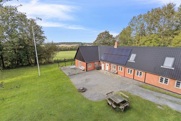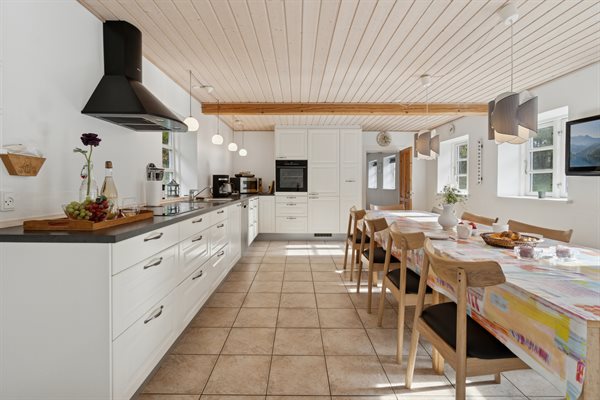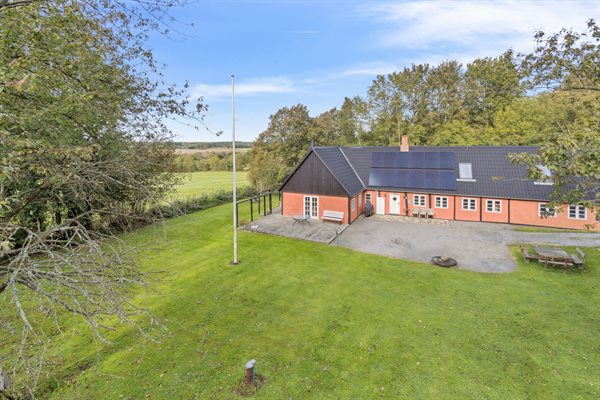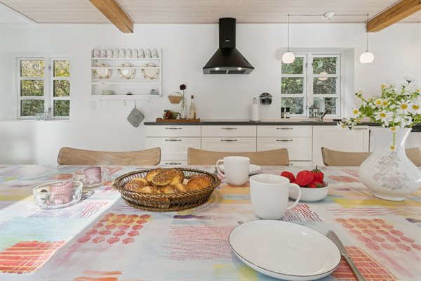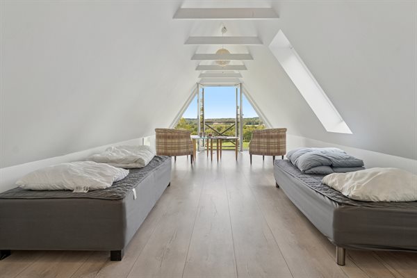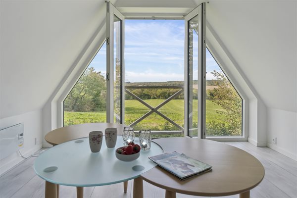Mit einem herrlichen Blick über die ländliche Umgebung findest du dieses gemütliche und geräumige Ferienhaus auf dem Gipfel des Slamrebjerg – einer Anhöhe außerhalb von Nexø. Das Haus liegt ungestört und ist auf drei Seiten von einem kleinen Wald umgeben. Es gibt eine große Rasenfläche mit viel Platz für Ballspiele und andere Aktivitäten im Freien. Die Sonne kannst du auf der großen Terrasse mit Gartenmöbeln genießen. Das Haus ist in zwei Etagen gebaut: Im Erdgeschoss findest du zwei Schlafzimmer, eine Küche mit Essbereich und ein gemütliches Wohnzimmer. Im Obergeschoss befinden sich zwei weitere Schlafzimmer. Die große, helle Küche lädt zum gemeinschaftlichen Kochen ein. Bitte beachte, daß keine Internetvebindung zur Verfügung steht. Der Mobilfunkempfang ist jedoch sehr gut, sodass du problemlos über Chromecast streamen kannst.