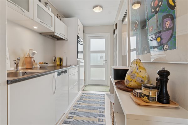 Die Wohnung befindet sich im 1. Stock mit direktem Eingang von der Rückseite – ganz ohne Treppen. Sie ist gemütlich eingerichtet, mit Kunst an den Wänden und gutem dänischem Stil. Du hast direkten Zugang zum ostseitigen Balkon, wo du die Aussicht und deinen Morgenkaffee genießen kannst.