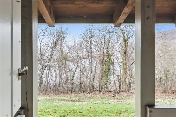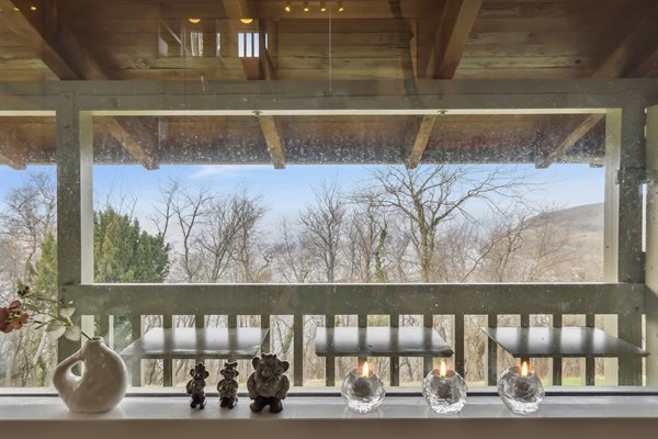 Die Wohnung erstreckt sich über zwei Ebenen. Auf der oberen Ebene, die auf gleicher Höhe wie der Eingangsbereich und das schrägende Gelände liegt, befinden sich der Wohn- und Essbereich mit Küche, das Badezimmer sowie ein Schlafzimmer. Auf der versetzten Ebene darunter liegt das helle und einladende Wohnzimmer mit offener Decke bis zum First und direktem Zugang zur Laubengangterrasse. Die Einrichtung ist gemütlich und einladend – hier fühlst du dich schnell wie zu Hause.