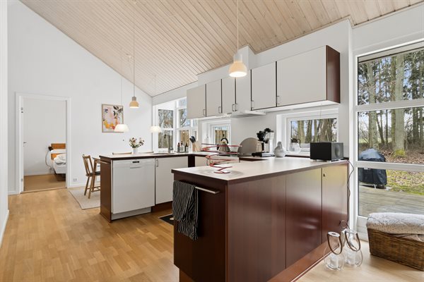 Großes und gepflegtes Ferienhaus in einem ausgebauten Ferienhausgebiet, relativ nah an den Sandstränden bei Hasle gelegen – der gemütlichen Kleinstadt an der Westküste Bornholms, deren Hafenbereich heute zu einem Ort für Badeleben und entspannte Atmosphäre mit kleinen Restaurants umgestaltet wurde. Im Hafenbereich wurde außerdem ein Sandstrand angelegt, der den ganzen Sommer über sowohl von Gästen als auch von Einheimischen gerne genutzt wird.