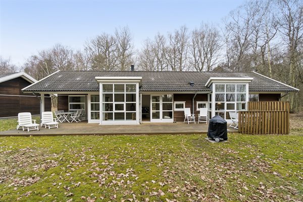 Auch außen präsentiert sich das Haus sehr gepflegt. Besonders die große, teilweise überdachte Terrasse lädt dazu ein, die Ruhe der grünen Umgebung zu genießen. Von hier aus erreichst du außerdem bequem die von Wald umgebenen Ufer des Rubinsøen – ein echtes Naturjuwel.