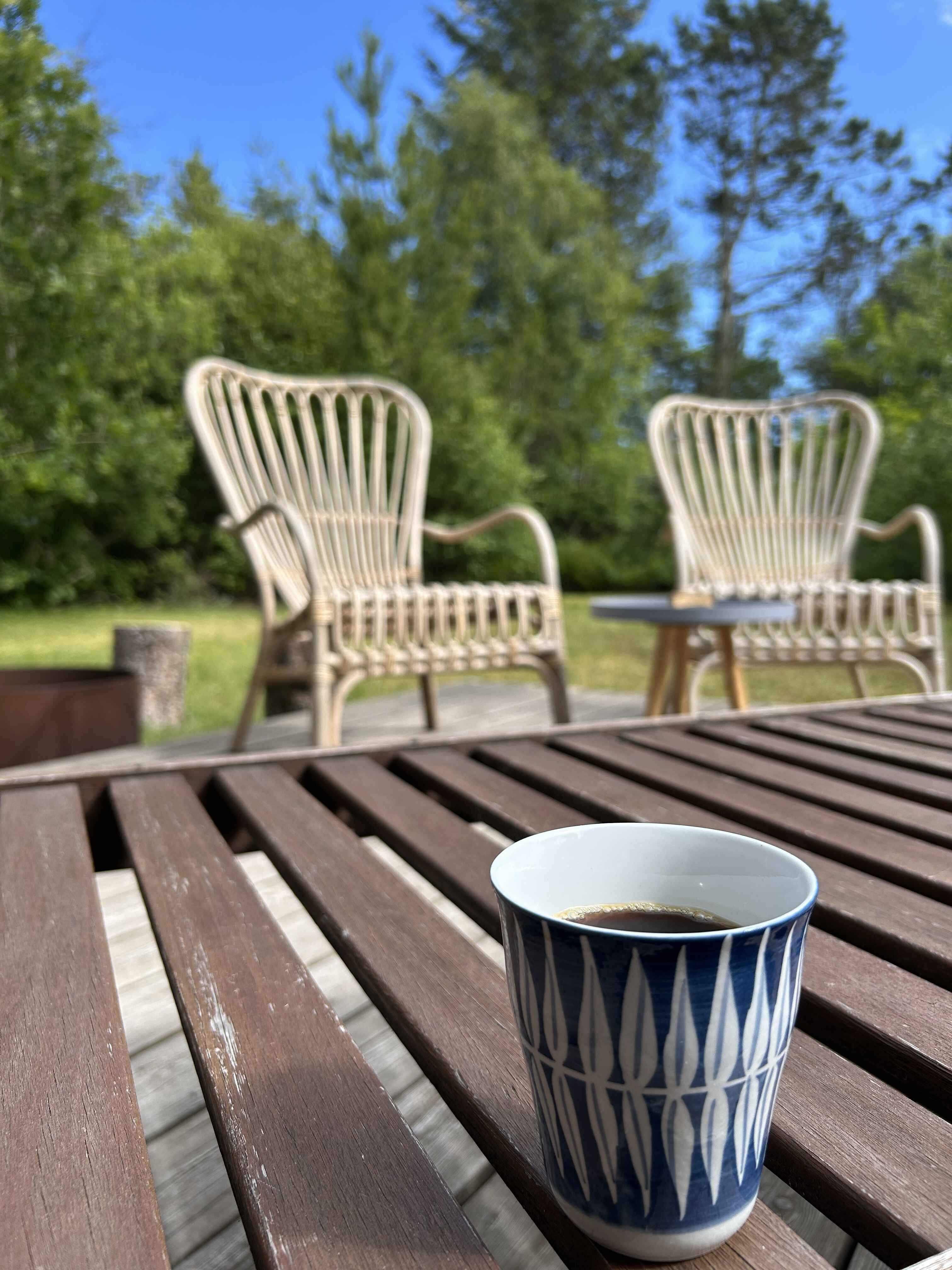 Vom Küchen-Essbereich führen französische Türen zu zwei großen, privat gelegenen Terrassen. Diese charmanten Außenbereiche eignen sich ideal für Mahlzeiten im Freien, Sonnenbaden in ungestörter Umgebung oder gemütliche Abende unter dem Sternenhimmel. Die Terrassen sind von alten Bäumen und üppigem Grün umgeben und bieten Privatsphäre und ein Gefühl, eins mit der Natur zu sein.