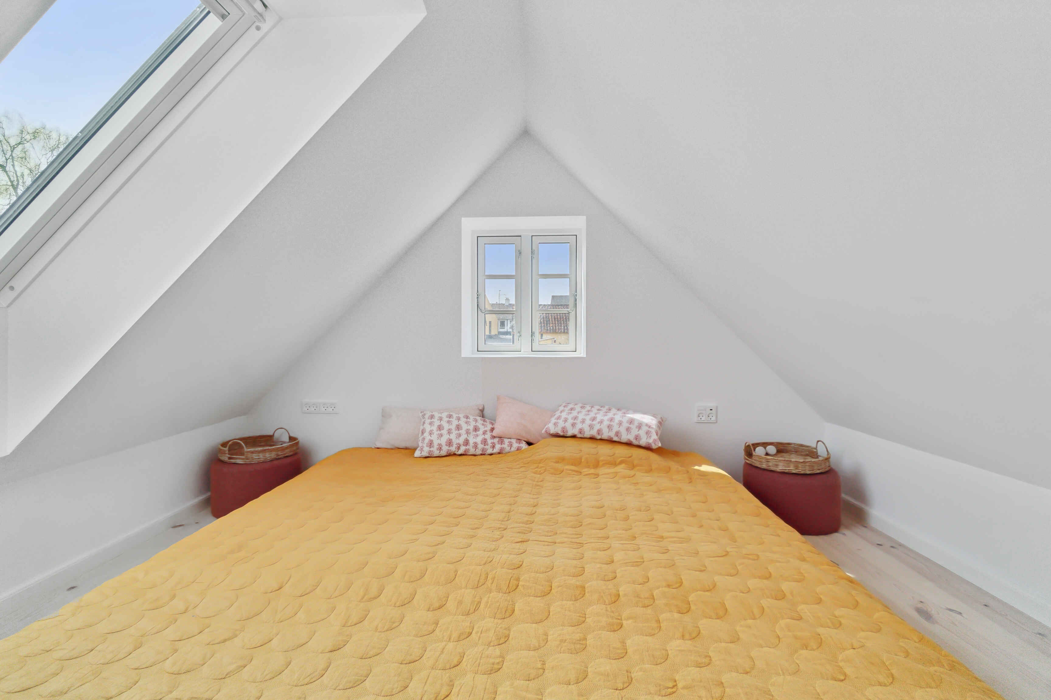 Es gibt zwei Schlafzimmer, eines mit einem Doppelbett, das andere mit einem Etagenbett und einem Einzelbett. Darüber hinaus gibt es zwei Matratzen auf dem Dachboden.