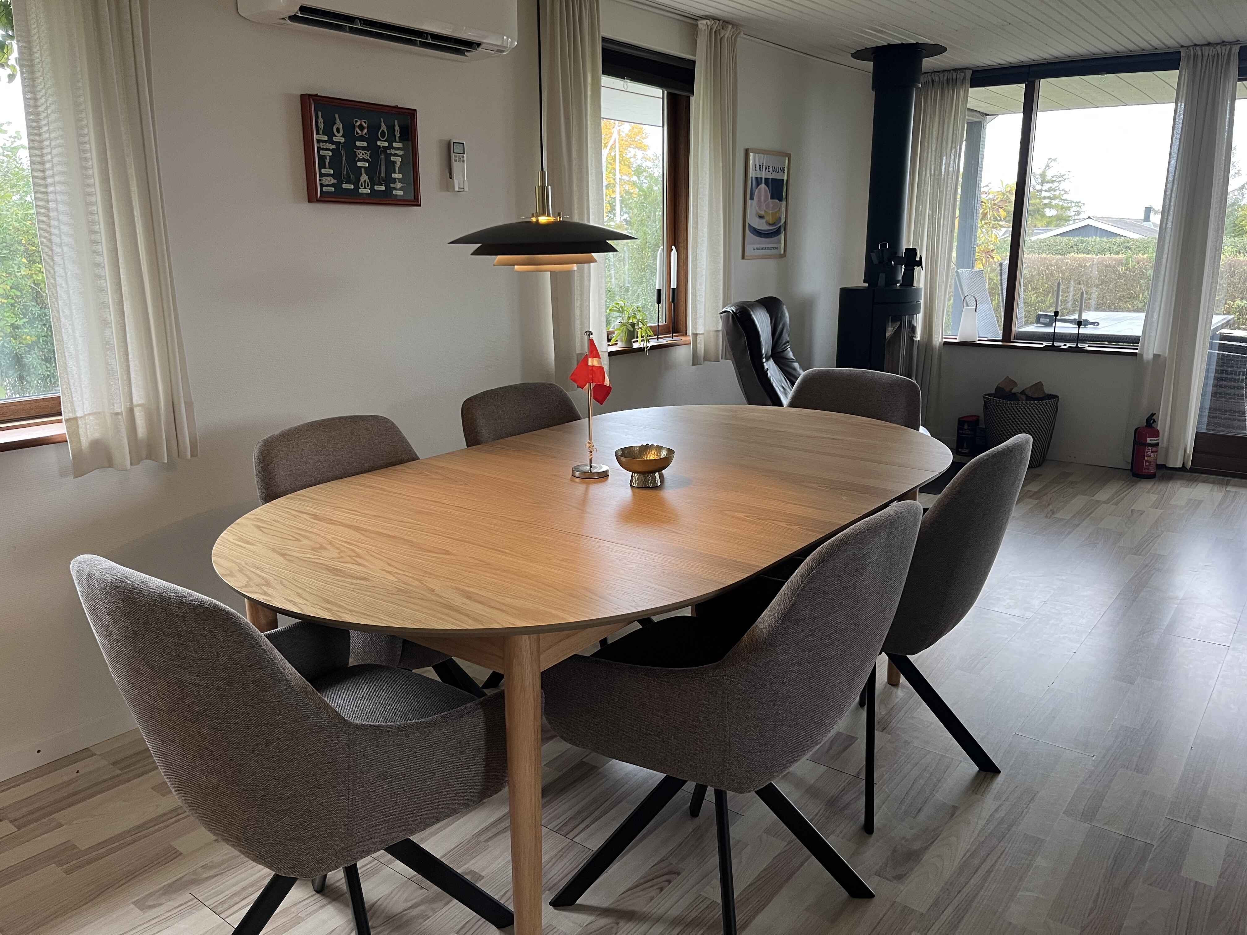 Das Ferienhaus ist für 5 Personen geeignet. Das Ferienhaus ist 70 m² groß und wurde 1970 erbaut. Das Ferienhaus ist sowohl mit einem Holzofen als auch mit einer energiesparenden Wärmepumpe ausgestattet. Das Ferienhaus verfügt über eine Waschmaschine. Für die Kleinsten gibt es 1 Stück. Hochstuhl. Es gibt ein Badezimmer mit Dusche und Toilette. Im Badezimmer gibt es eine Fußbodenheizung.