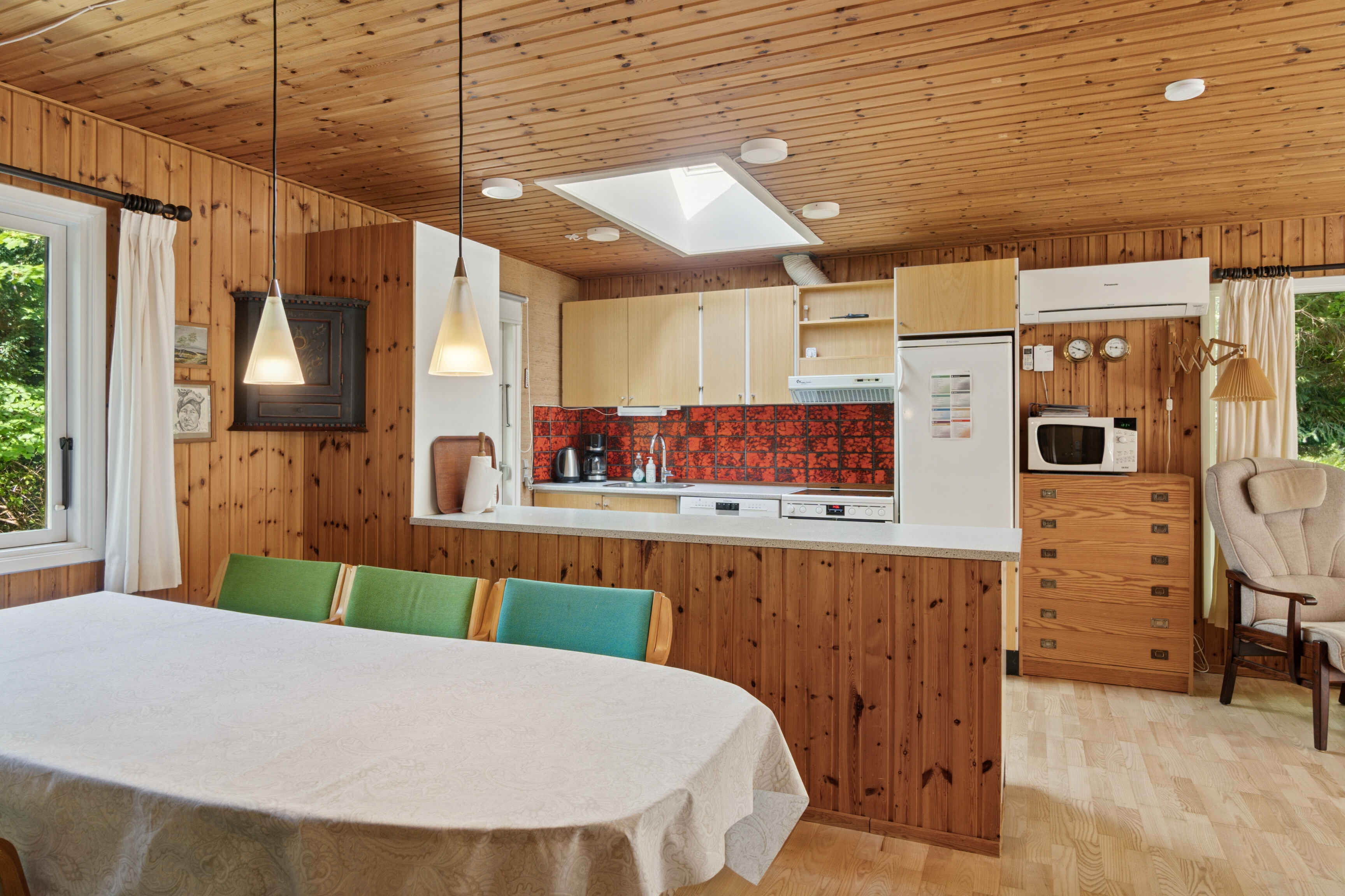 Eine Wärmepumpe sorgt das ganze Jahr über für ein angenehmes Raumklima, und das Haus ist mit Internet ausgestattet, sodass auch Arbeiten oder Streaming möglich ist.