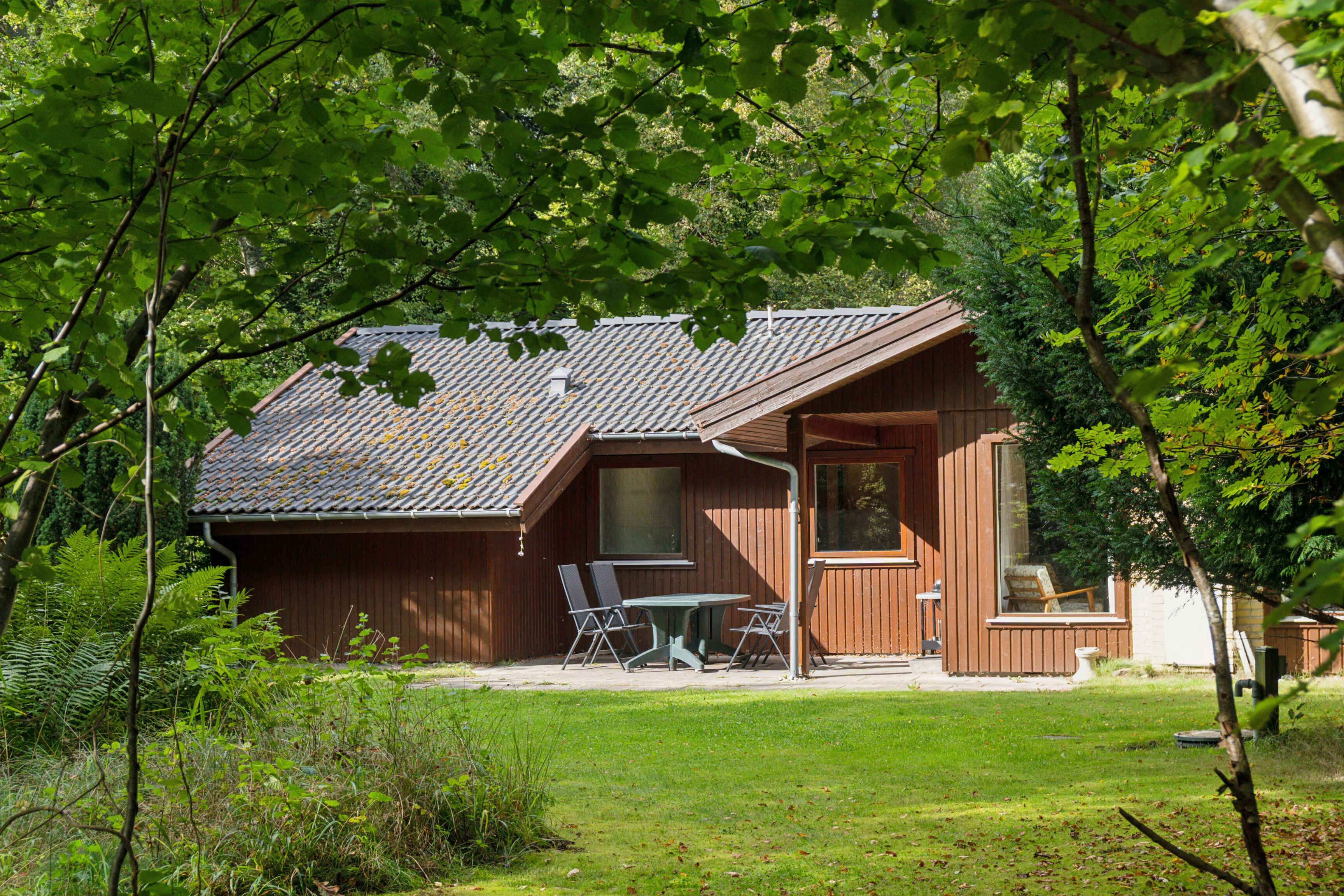 Das Haus liegt auf einem ungestörten Naturgrundstück mit Rasenfläche, die sich gut für Spiele und Ballspiele eignet. Rundherum gibt es Wald, in dem häufig Rehe zu sehen sind.