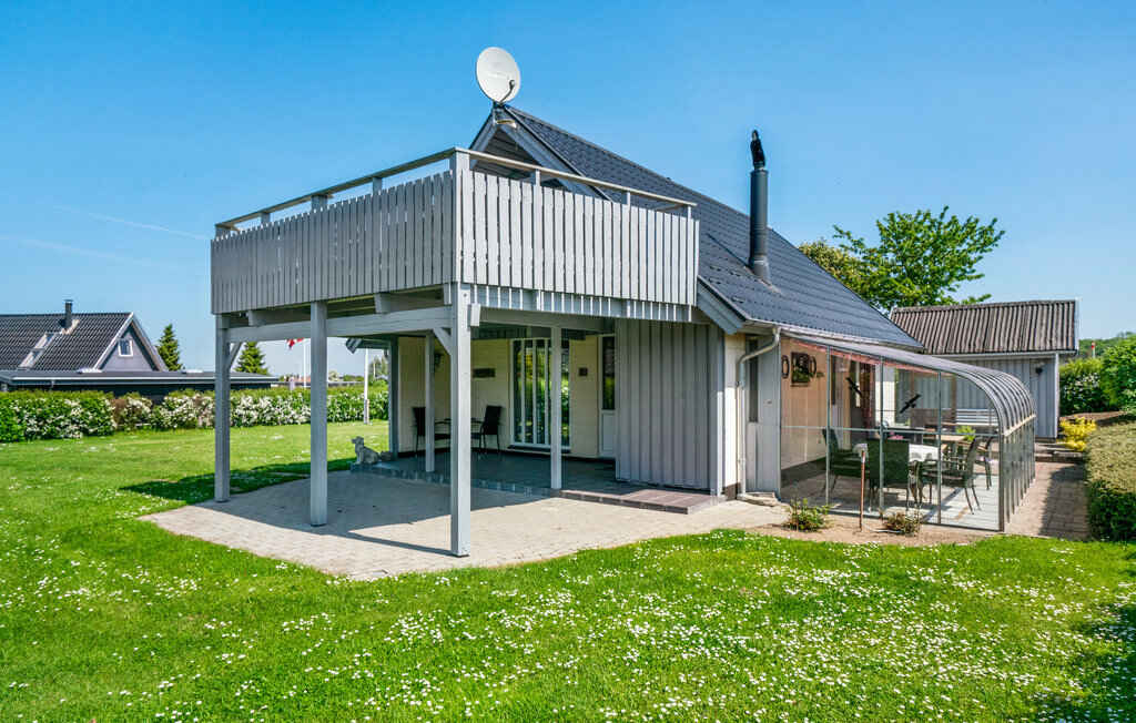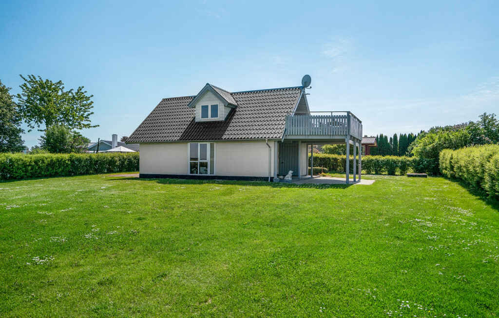 Dieses 94 m² große Ferienhaus verfügt über drei Schlafzimmer und bietet Platz für bis zu sieben Gäste. Mehrere Terrassen, darunter eine im Obergeschoss mit Blick aufs Wasser, laden zum Verweilen ein. Nur 200 Meter entfernt liegt der Strand, während der grüne Garten Raum für Gemeinschaft und Spiel bietet.