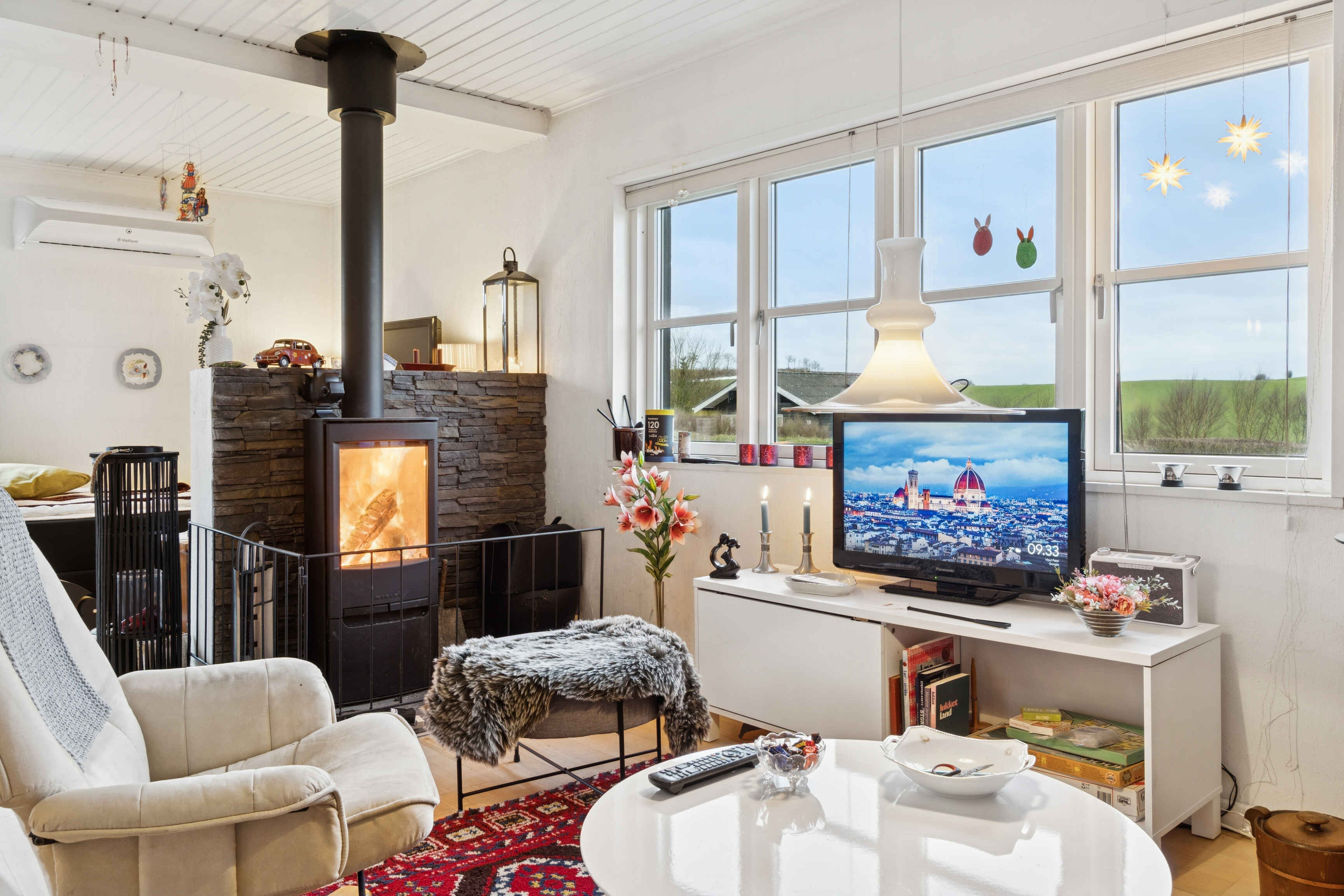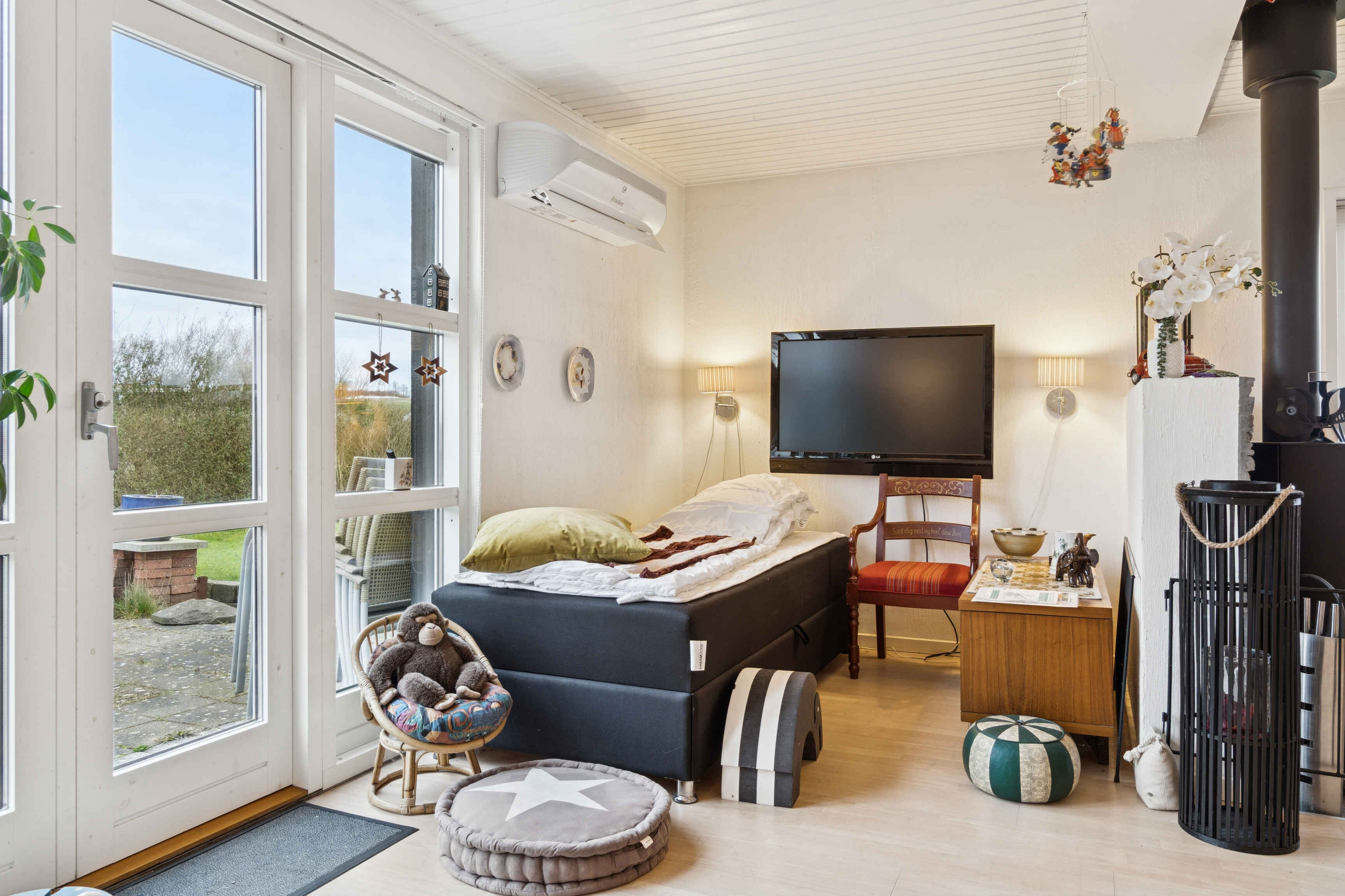 Die Einrichtung ist funktional und einladend. Vom Haus aus genießen Sie den Blick in die Umgebung, und der eingezäunte Garten bietet sichere Rahmenbedingungen für Kinder und Erwachsene.