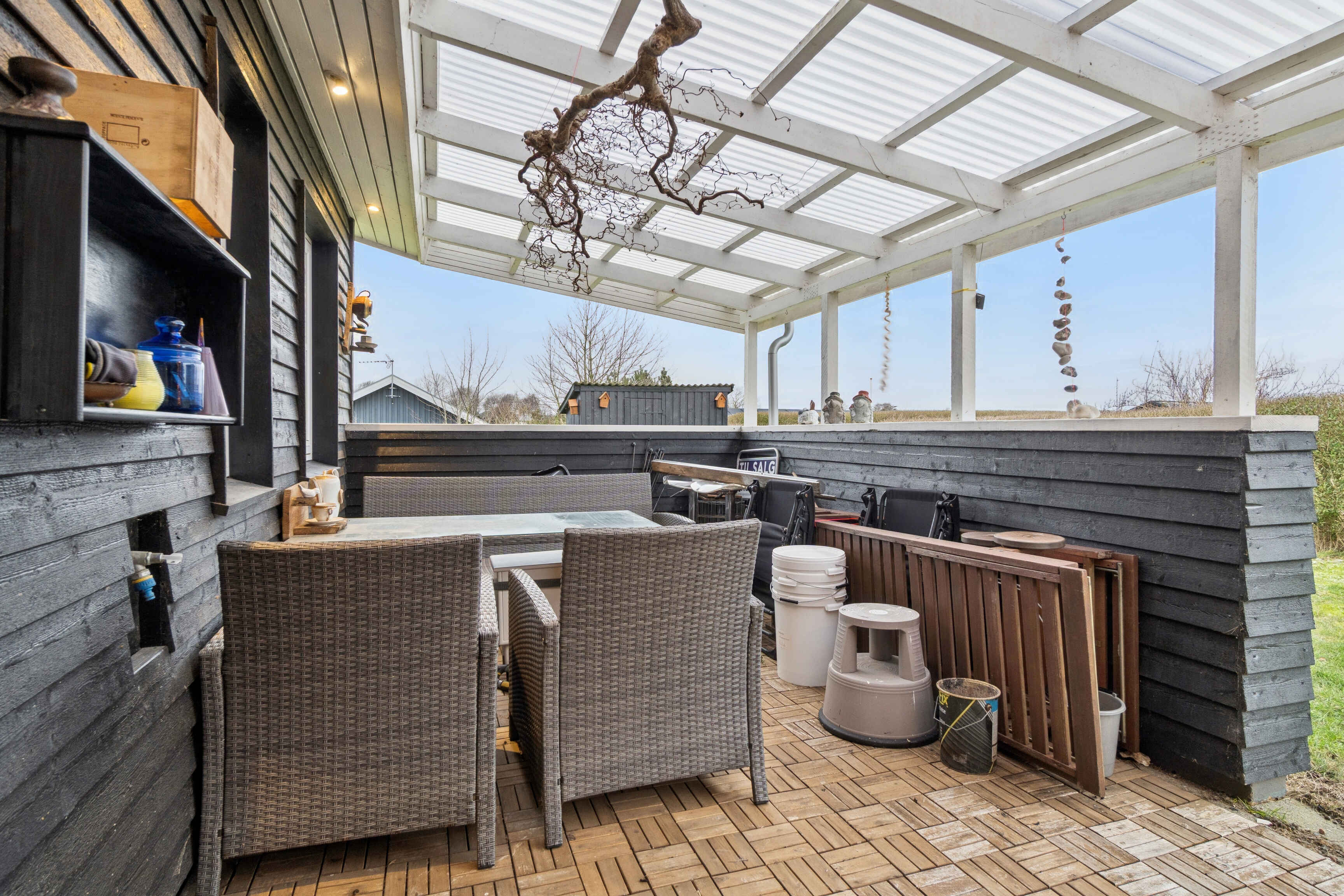 Der Außenbereich lädt zu entspannten Stunden ein. Der Garten eignet sich für Mahlzeiten im Freien, Ruhe und Erholung fernab des Alltags.