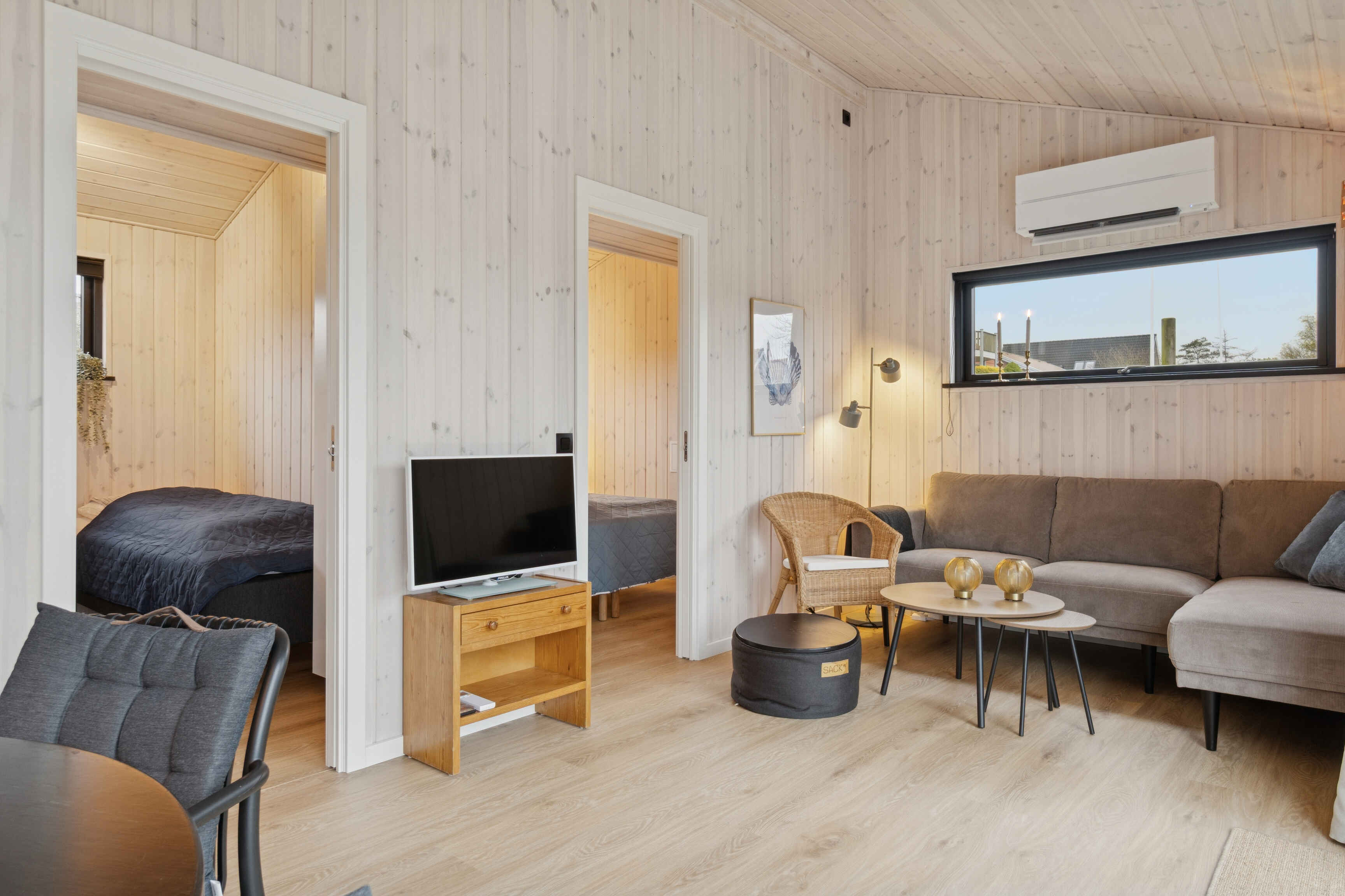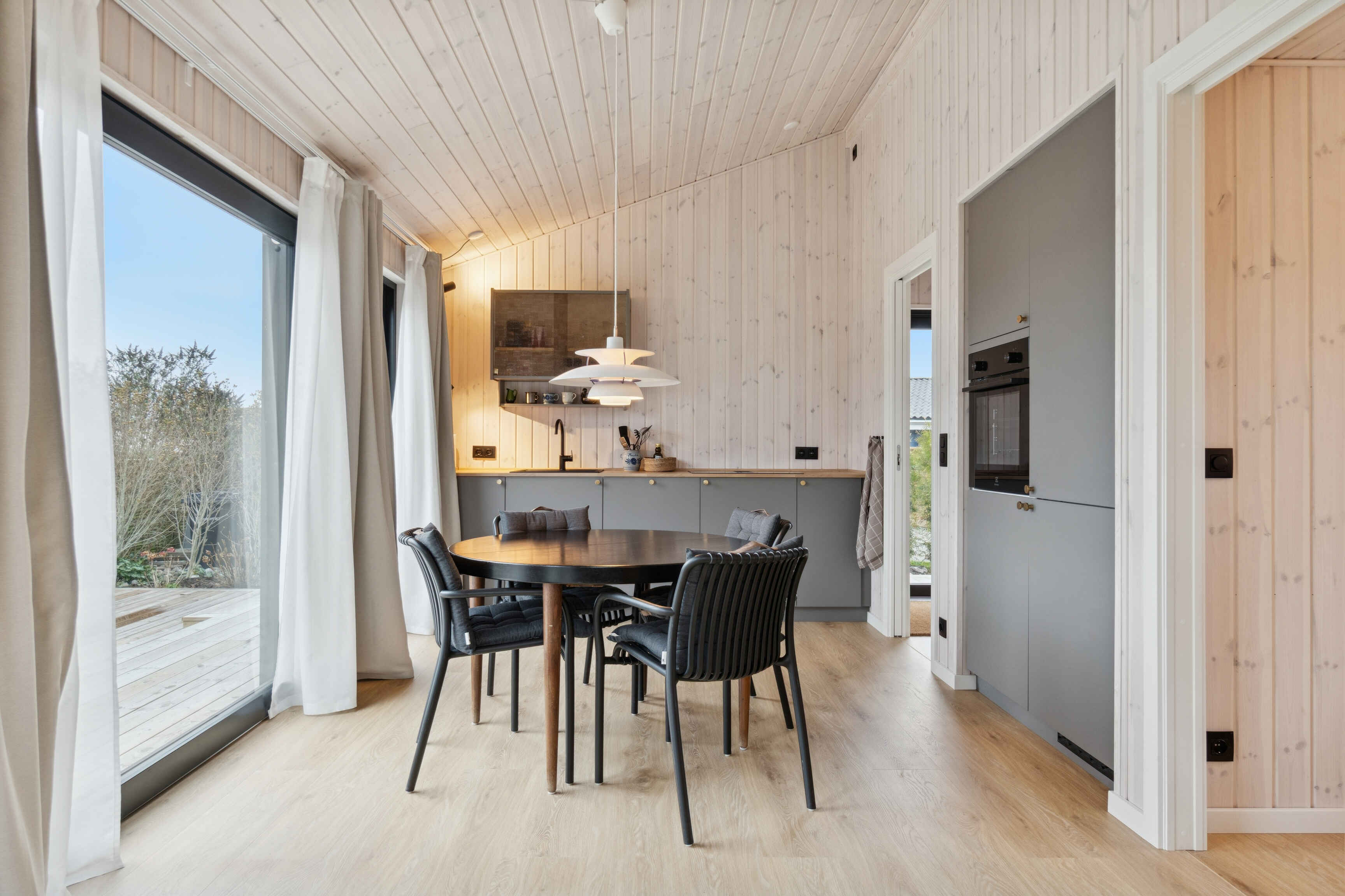 Das Ferienhaus ist gut eingerichtet und auf Gemütlichkeit ausgelegt. Die einladende Küche ist offen mit dem Wohnzimmer verbunden, und eine Schiebetür führt direkt auf die große, nach Süden ausgerichtete Terrasse, auf der Sie den ganzen Tag die Sonne genießen können. Die Terrasse hat eine kleine Stufe.