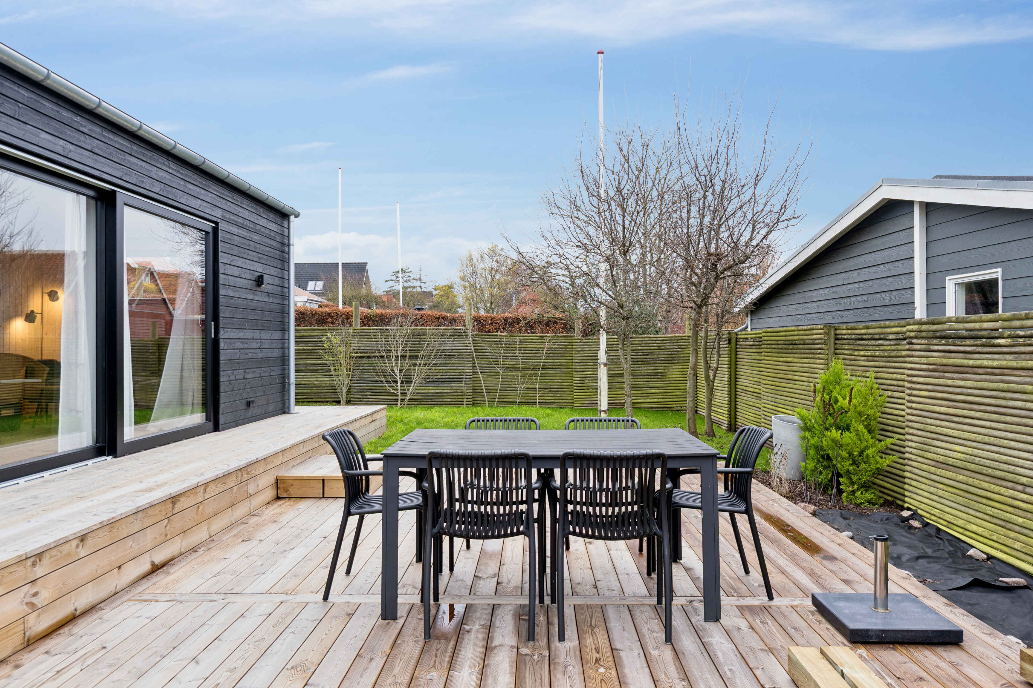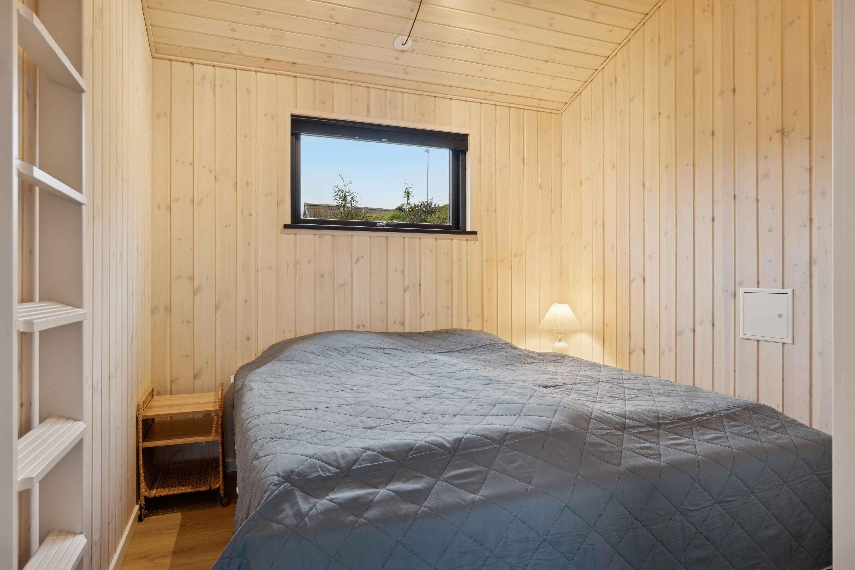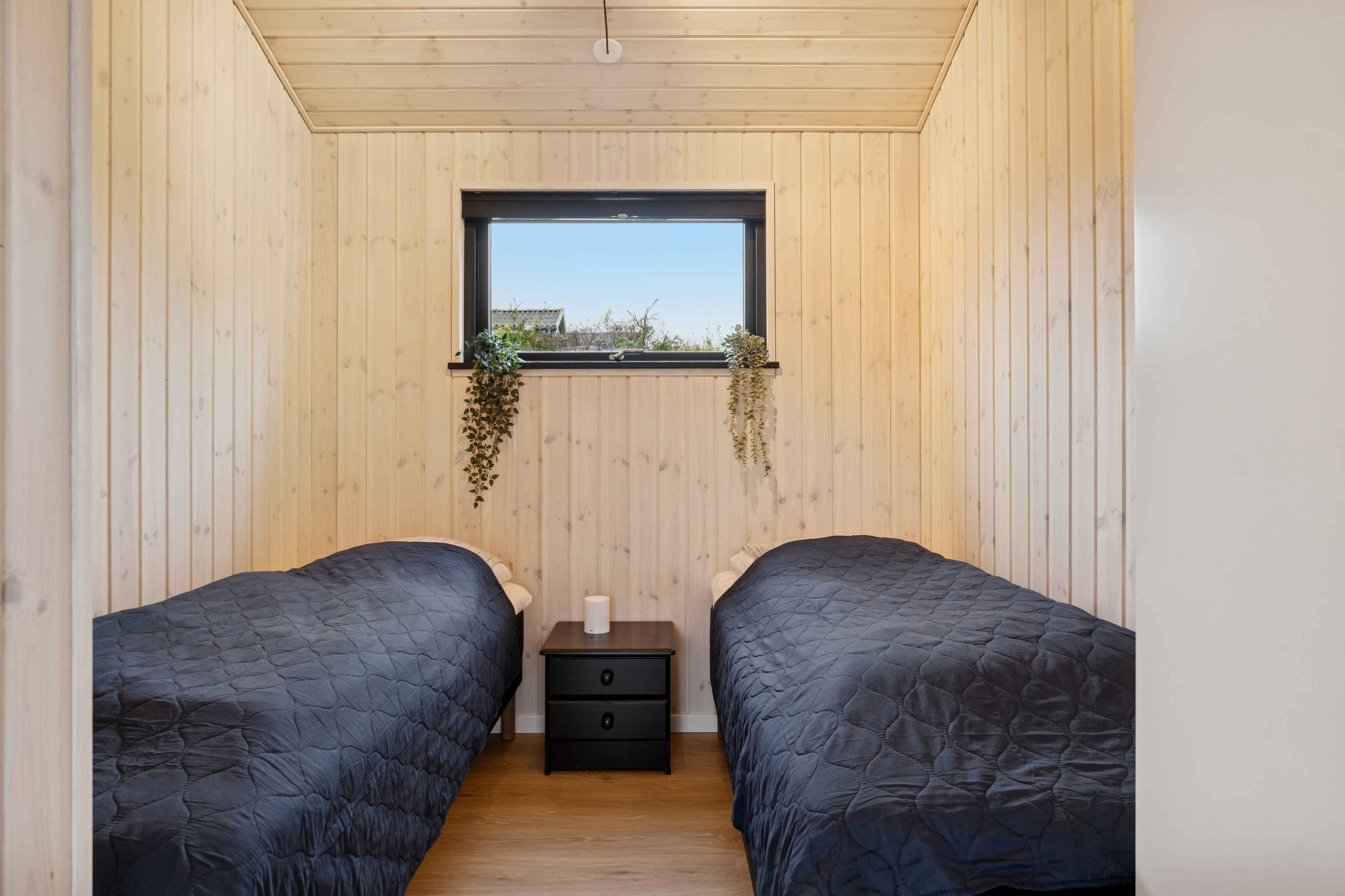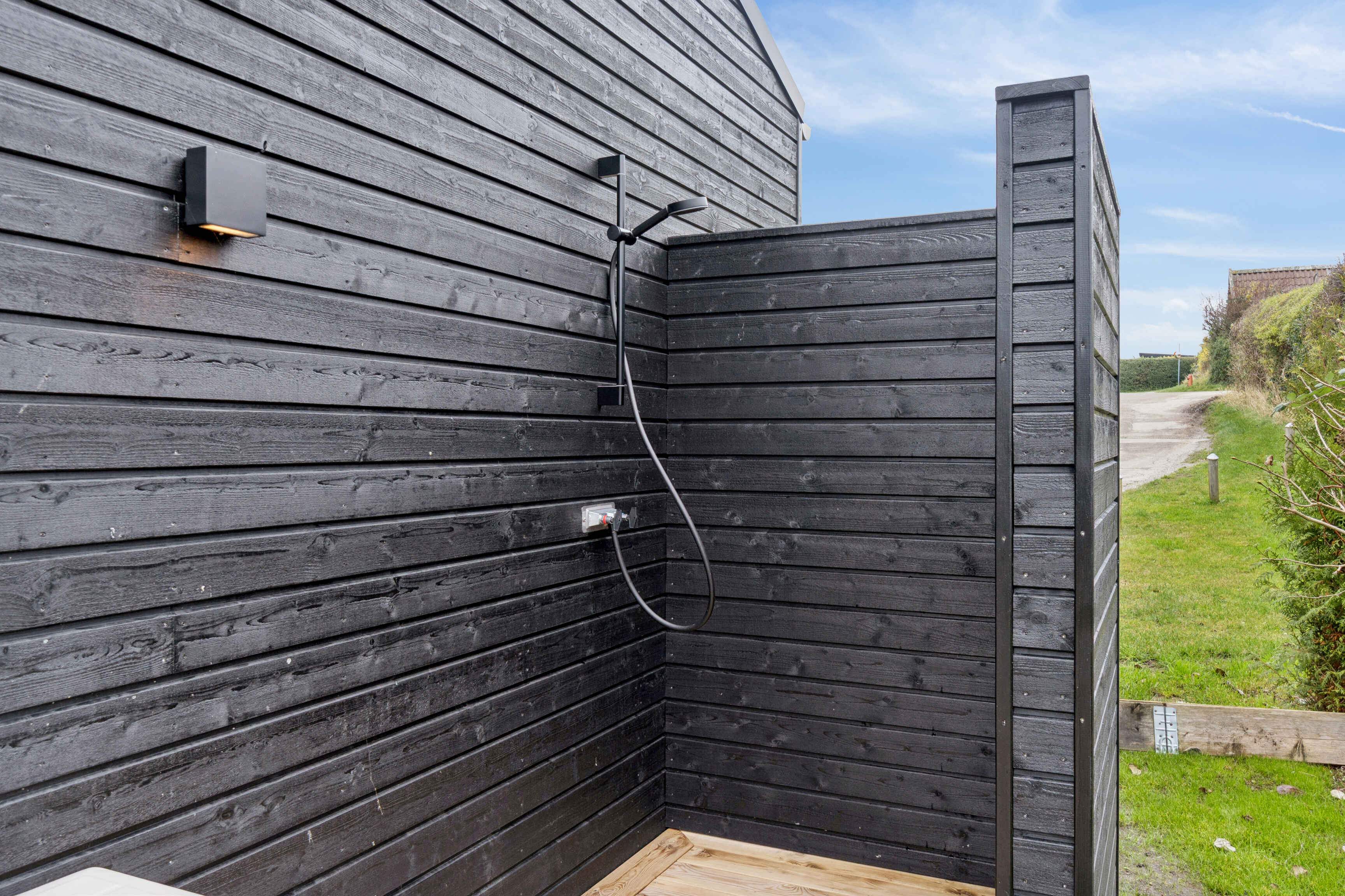 Es gibt zwei gemütliche Schlafzimmer: eines mit Doppelbett und eines mit zwei Einzelbetten, alle mit hochwertigen Matratzen. Das moderne Badezimmer verfügt über Dusche, Toilette und Waschmaschine. Nach dem Strand können Sie den Sand in der Außendusche hinter dem Haus abspülen. Der kleine Rasen bietet Platz zum Spielen und Entspannen.