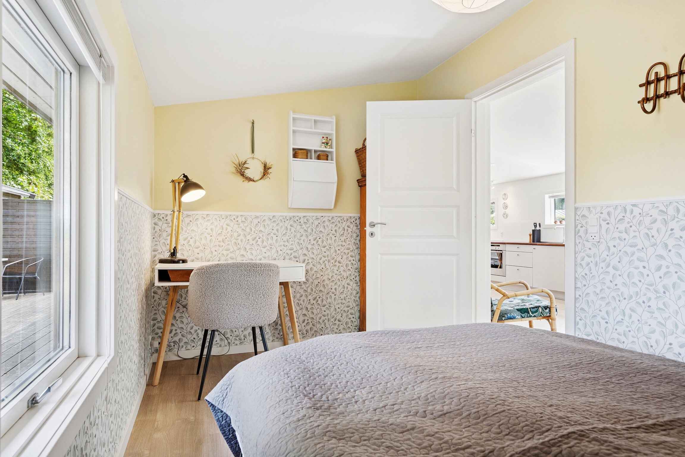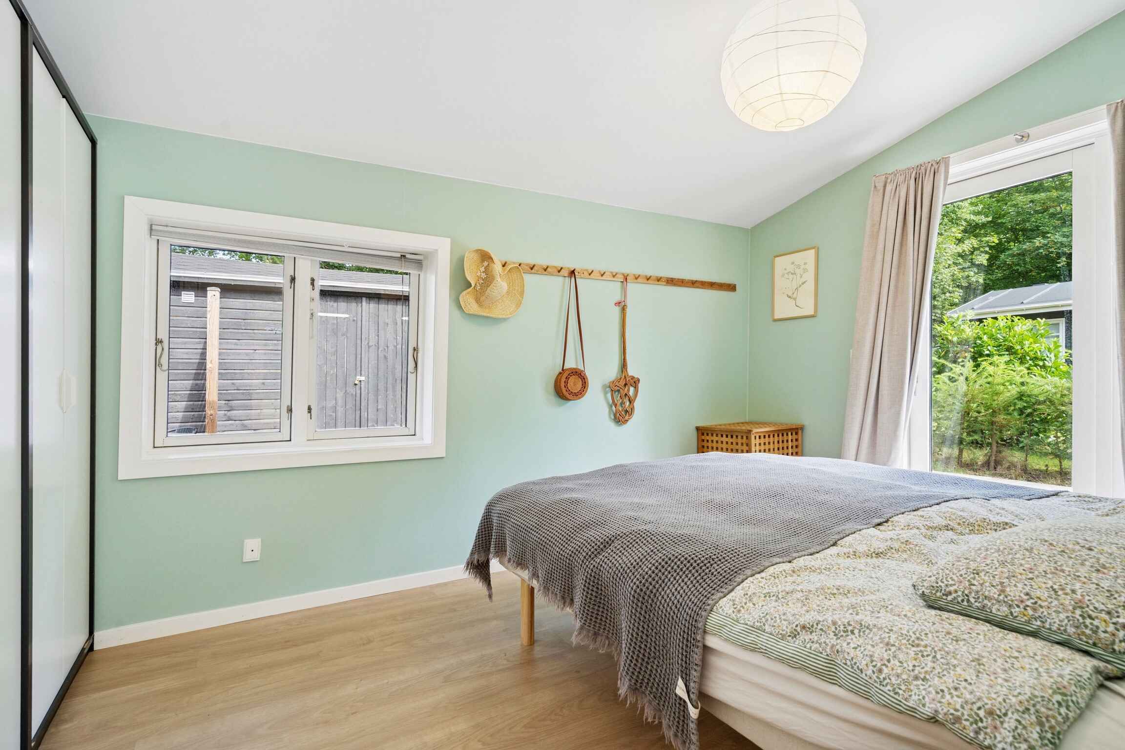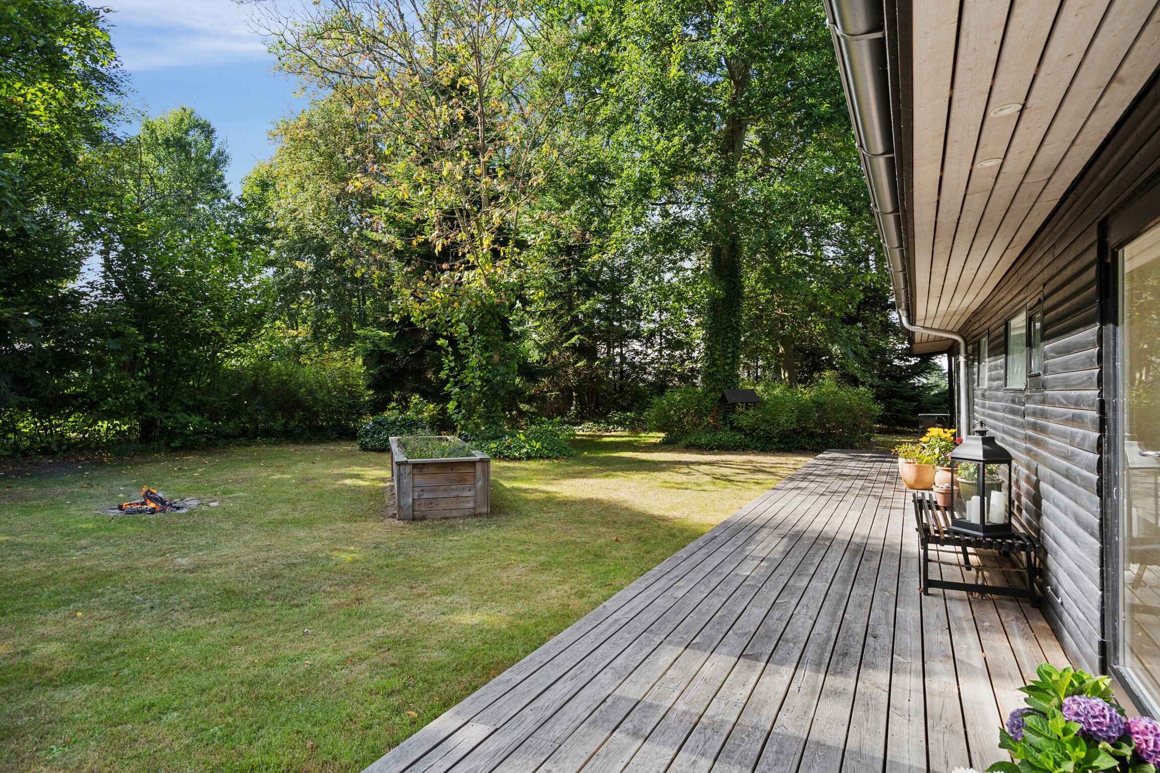 Hier wohnen Sie nur wenige hundert Meter vom Wasser entfernt, umgeben von hohen Bäumen und ruhigen Wegen. Das renovierte 83-m²-Ferienhaus bietet drei Schlafzimmer im Haupthaus – alle mit Doppelbett – sowie ein viertes Schlafzimmer mit Doppelbett in einem vollständig isolierten Anbau. Der offene Grundriss, große Fenster und der Holzofen sorgen für eine entspannte und funktionale Atmosphäre.