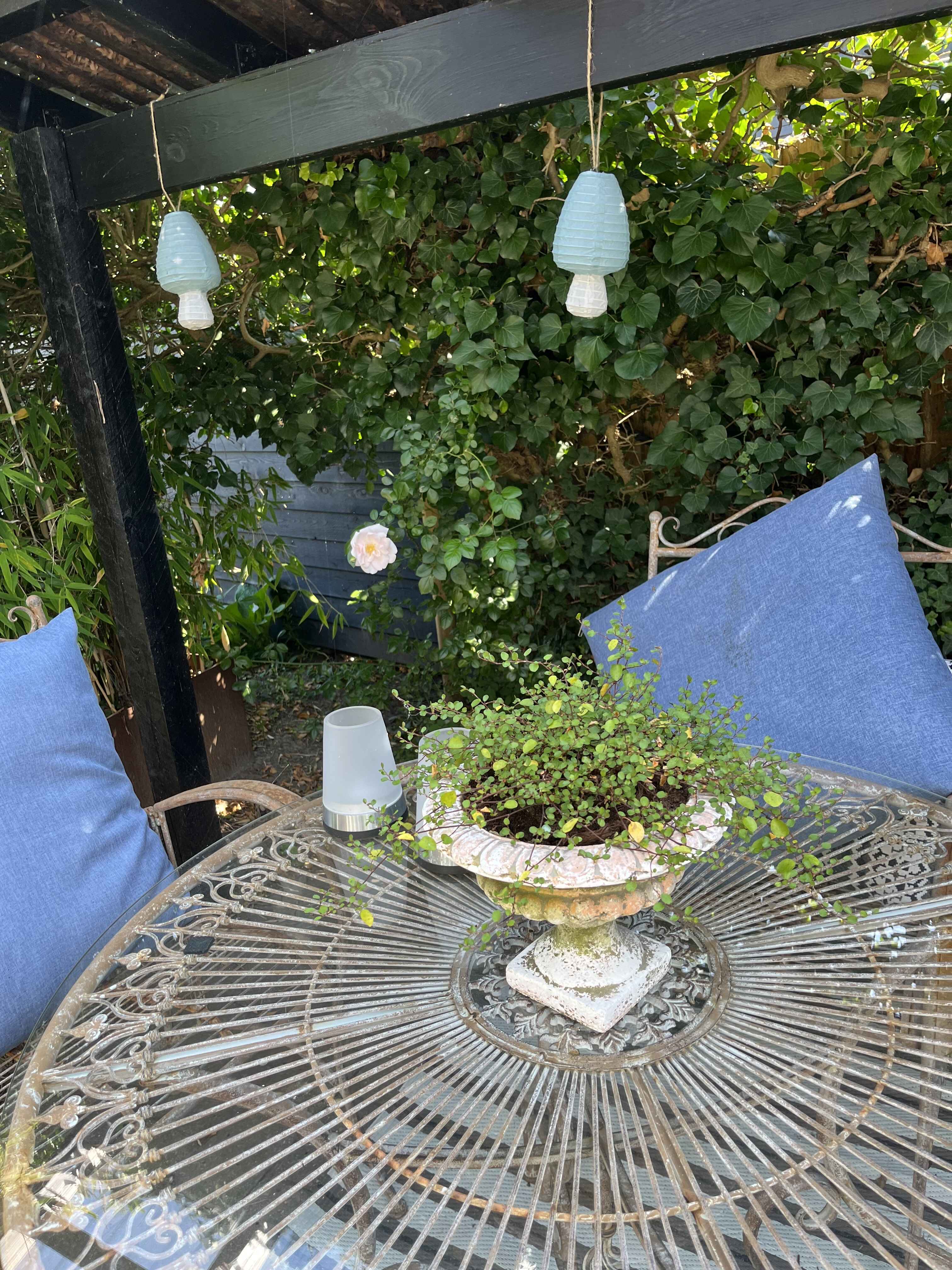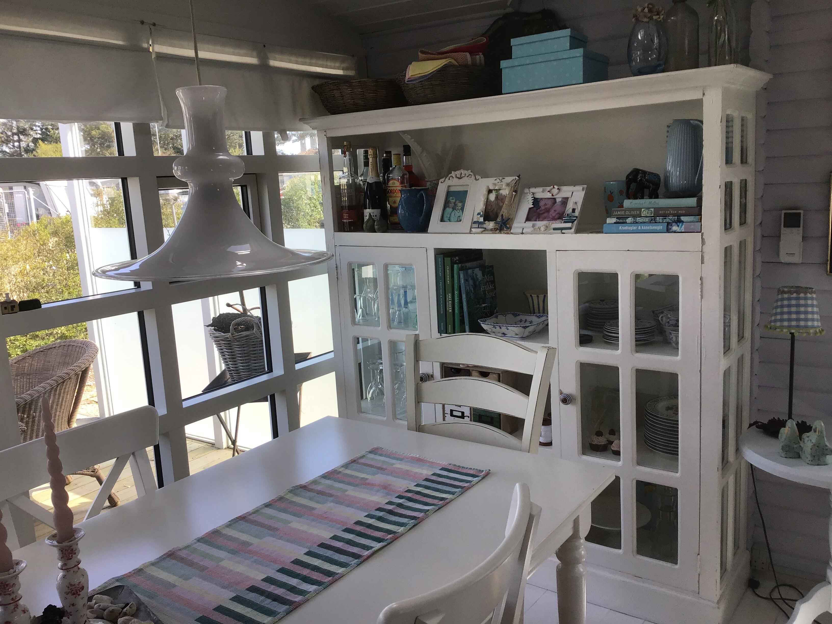 Das Haus verfügt über alle notwendigen Einrichtungen für einen unbeschwerten Aufenthalt außerhalb der Hauptsaison. Vom Wohnzimmer aus gelangt man direkt auf eine große Holzterrasse mit Markise und überdachter Pergola, ideal für milde Tage oder eine Tasse Kaffee an der frischen Luft.