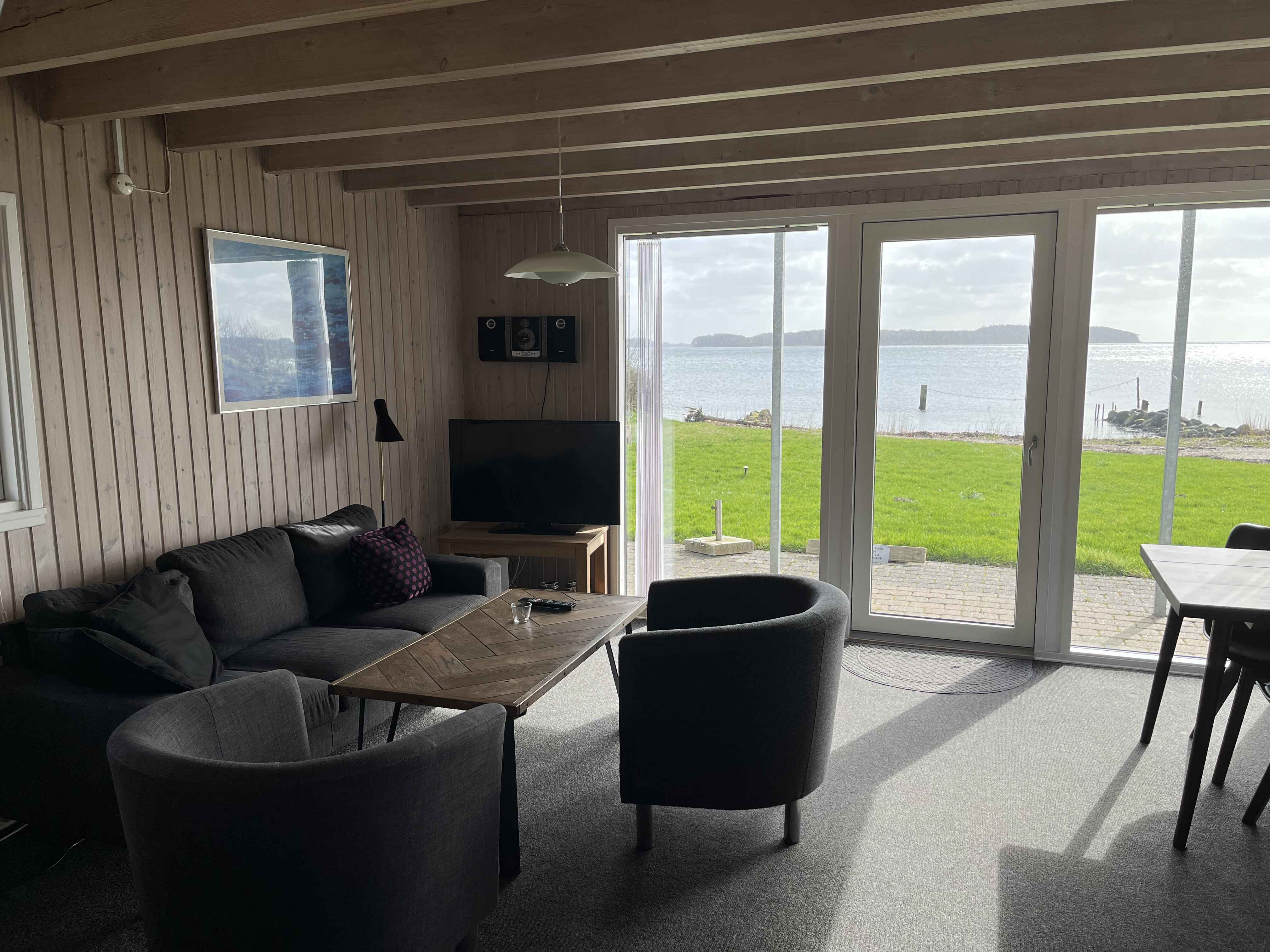 Willkommen in einem gut gelegenen Ferienhaus mit fantastischem Blick auf den Kleinen Belt. Genießen Sie die Aussicht sowohl vom Wohnzimmer als auch von der Terrasse, während die großen Fenster für viel Tageslicht sorgen und eine ruhige Atmosphäre schaffen, in der man wunderbar abschalten kann.