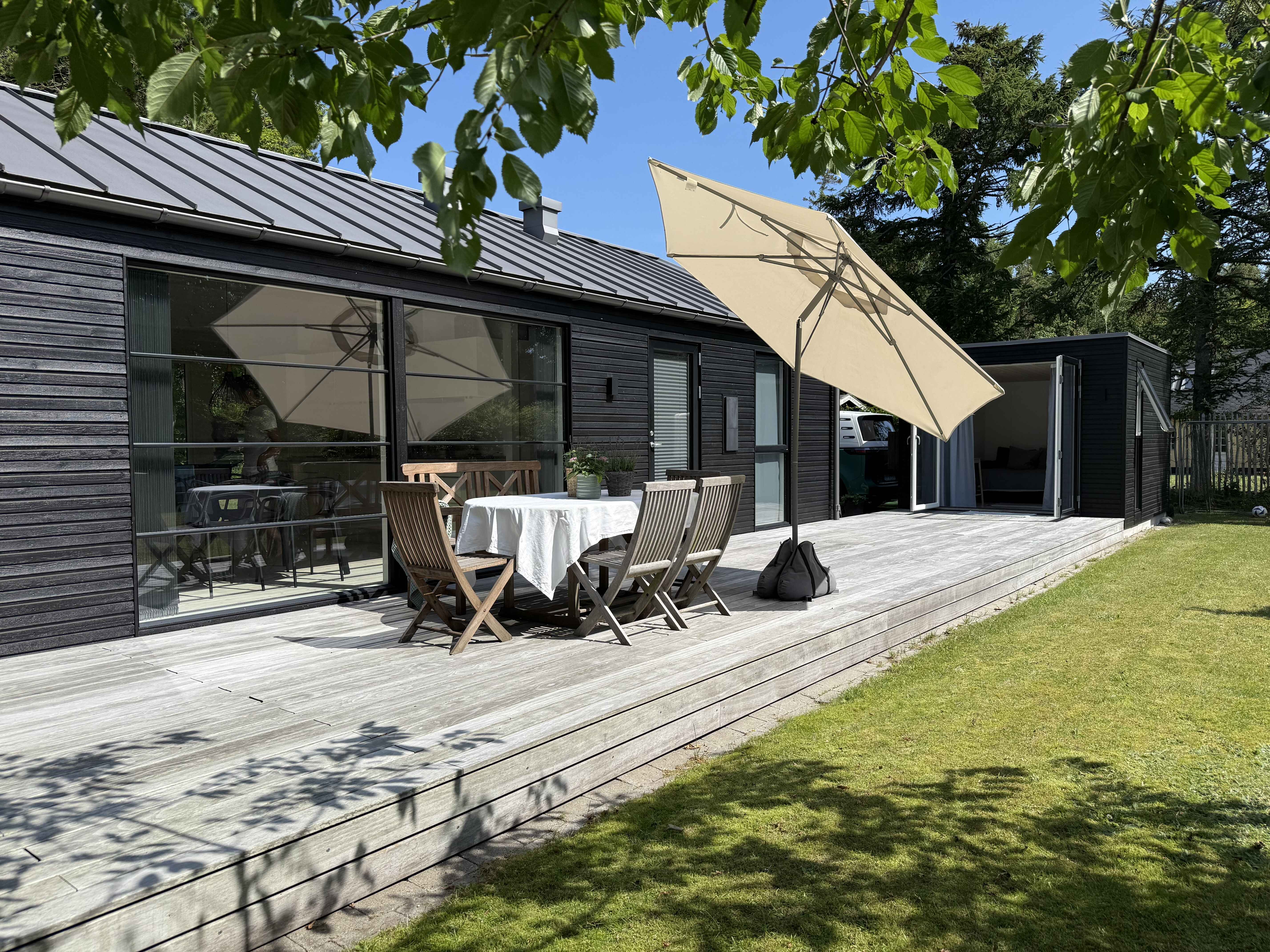 Hier haben Sie die Möglichkeit, in einem schönen Ferienhaus auf einem großen, bewachsenen Grundstück zu wohnen, nur etwa 250 Meter vom Wasser entfernt.