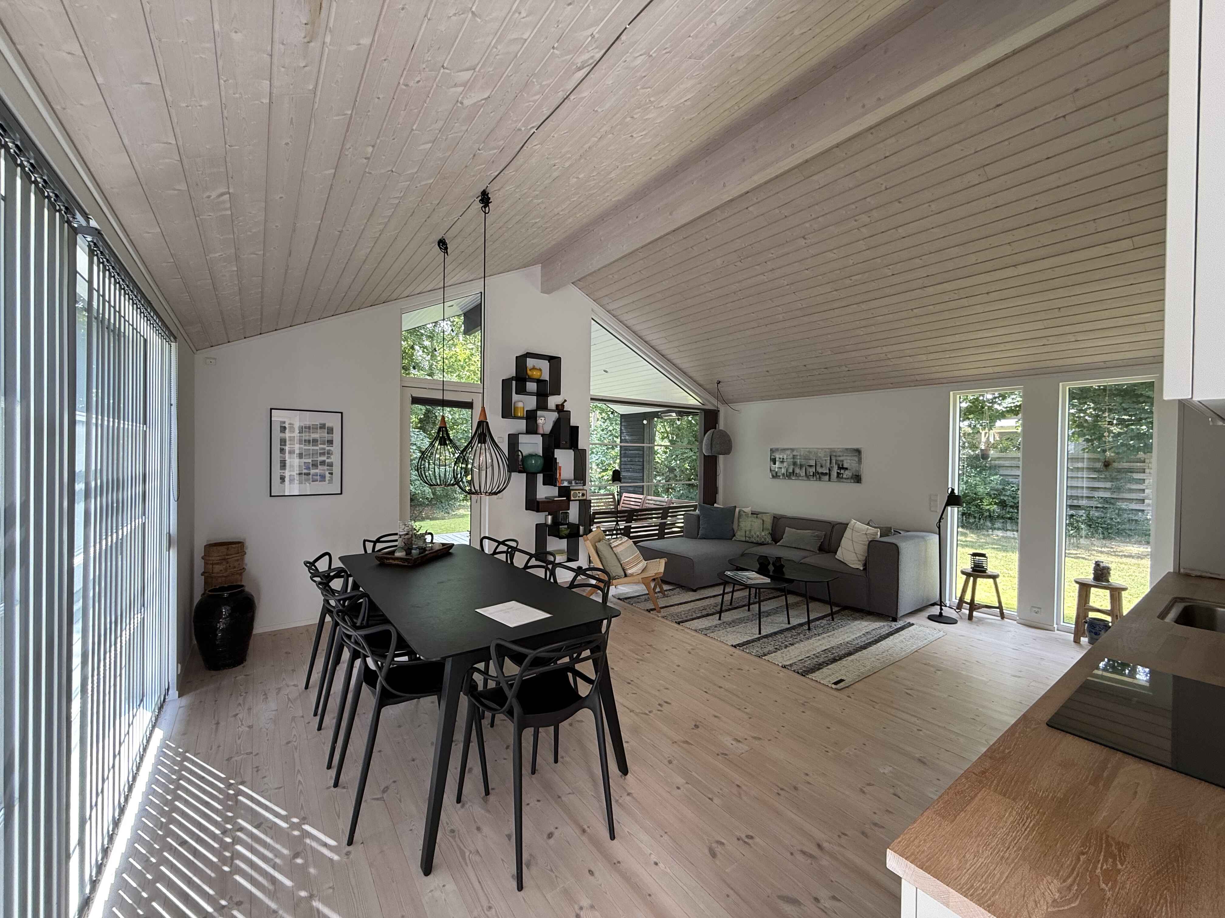 Hier gibt es eine Wärmepumpe, Highspeed-Internet und eine Ladestation für Elektroautos. Das Haus ist gut eingerichtet und verfügt über eine schöne Küche mit allem, was man braucht, in offener Verbindung mit dem Wohnzimmer. Es gibt einen hohen Deckenbereich, der ein wirklich gutes Raumgefühl vermittelt.