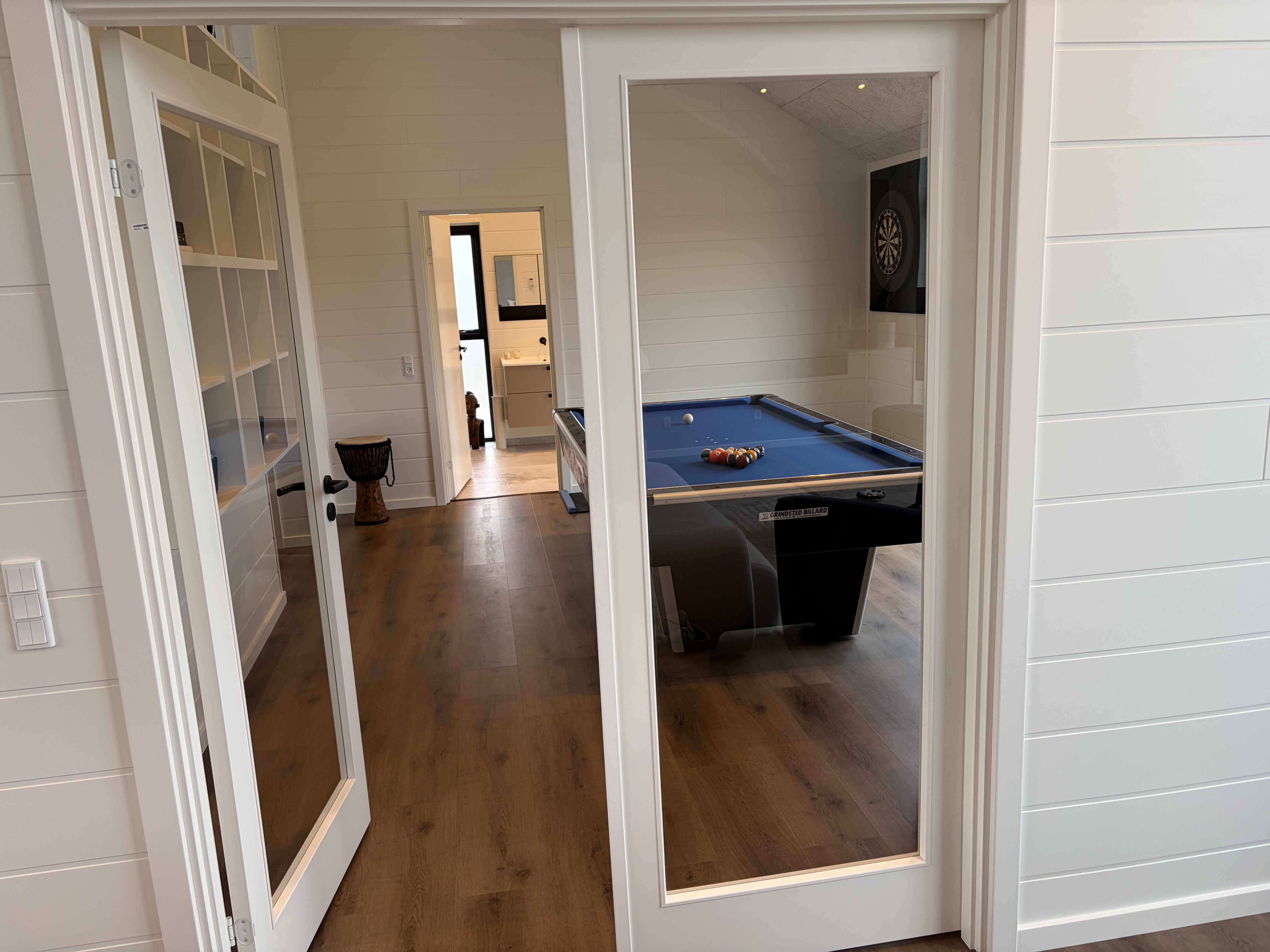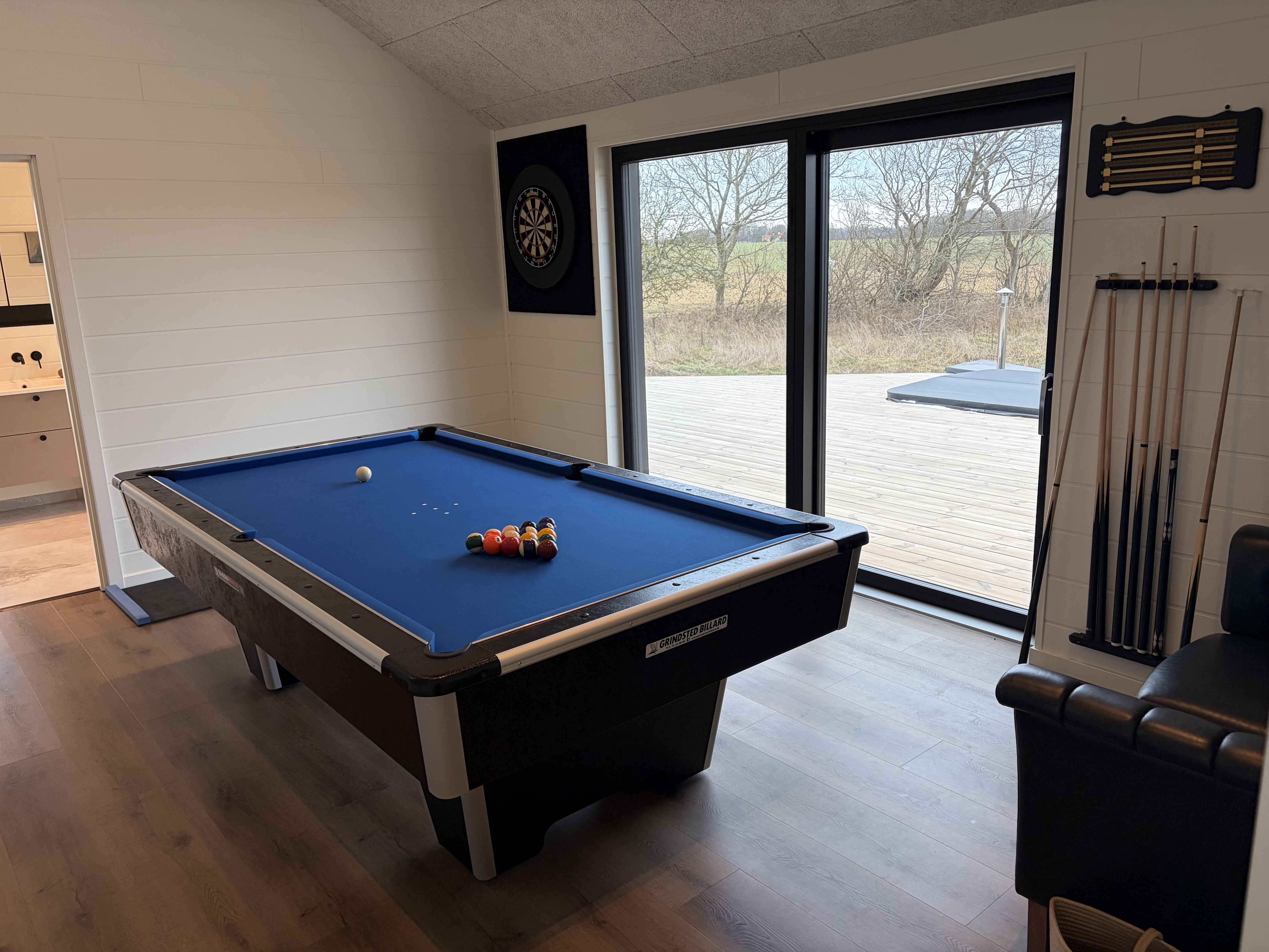 Aktivitätsraum mit Spielen, neuem Billard-/Tischtennistisch und Dart. Zwei weitere Schlafzimmer mit Doppelbetten und Galerie sowie zweites Bad mit Waschmaschine und Trockner.