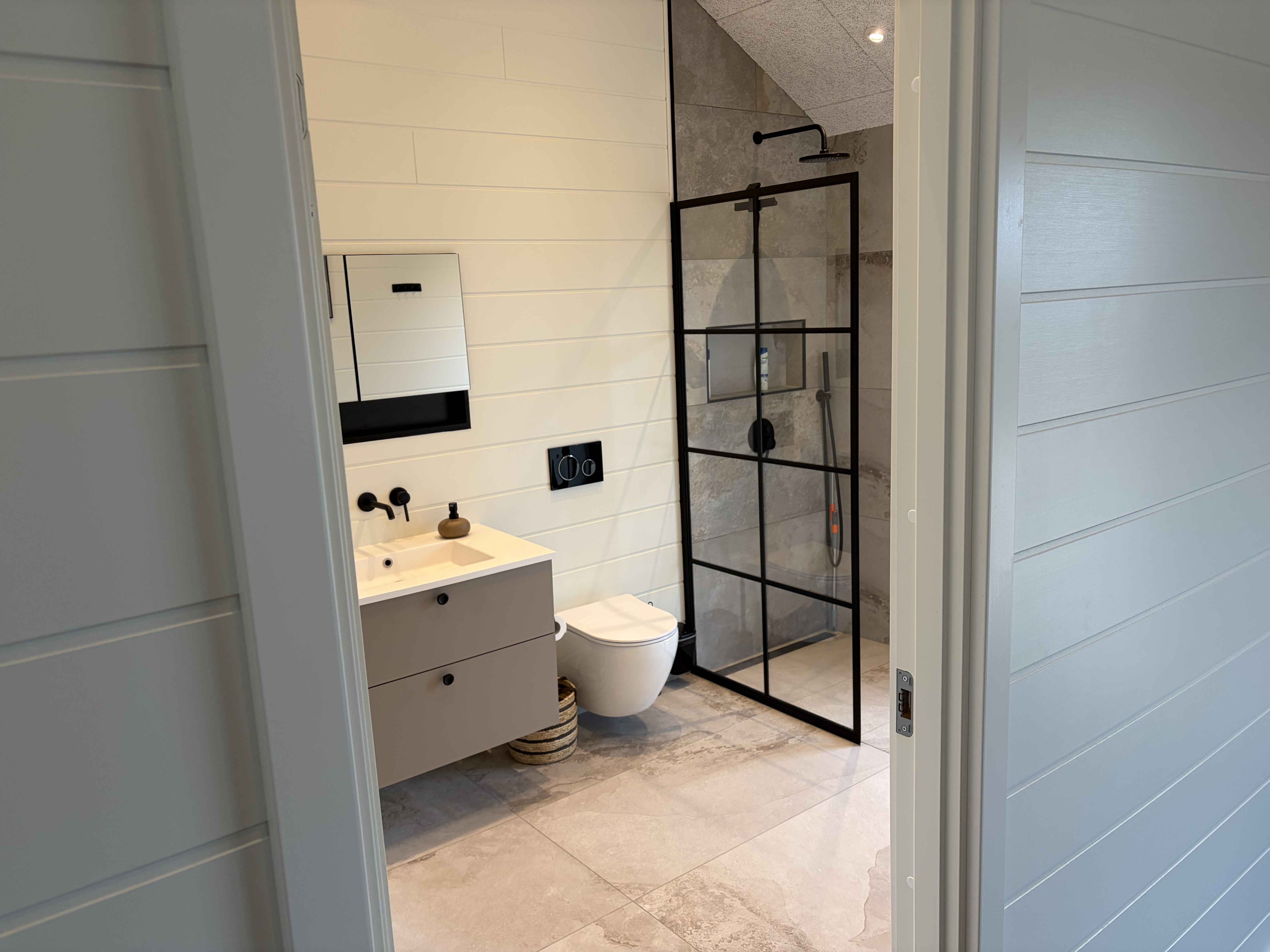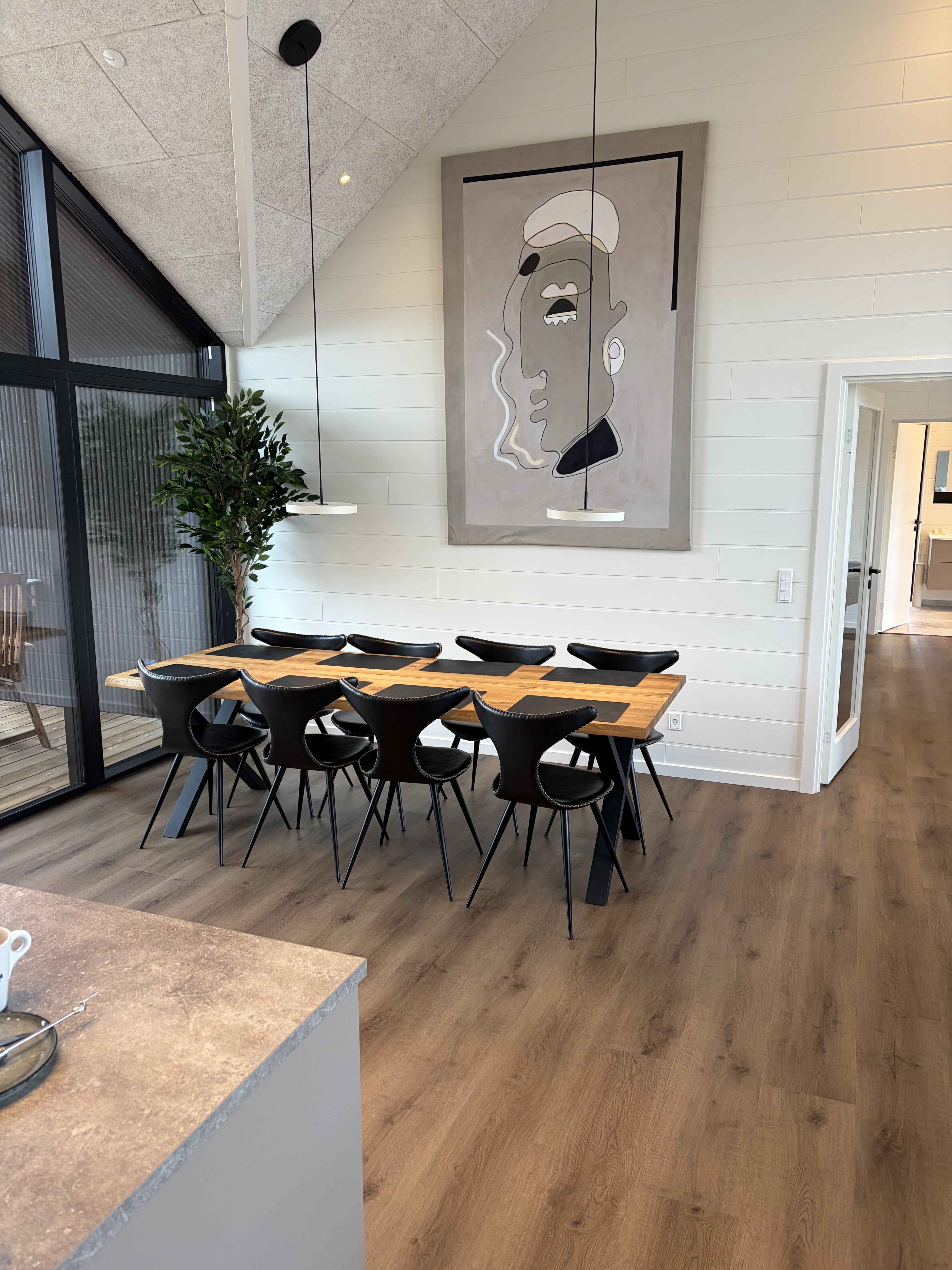 Das Haus hat 165 m² und verfügt über einen Eingangsbereich, zwei Schlafzimmer mit Doppelbetten und ein Bad mit Einbauarmaturen und großer Dusche. Großes Wohnküchenbereich mit moderner Ausstattung und Essplatz für 8 Personen.