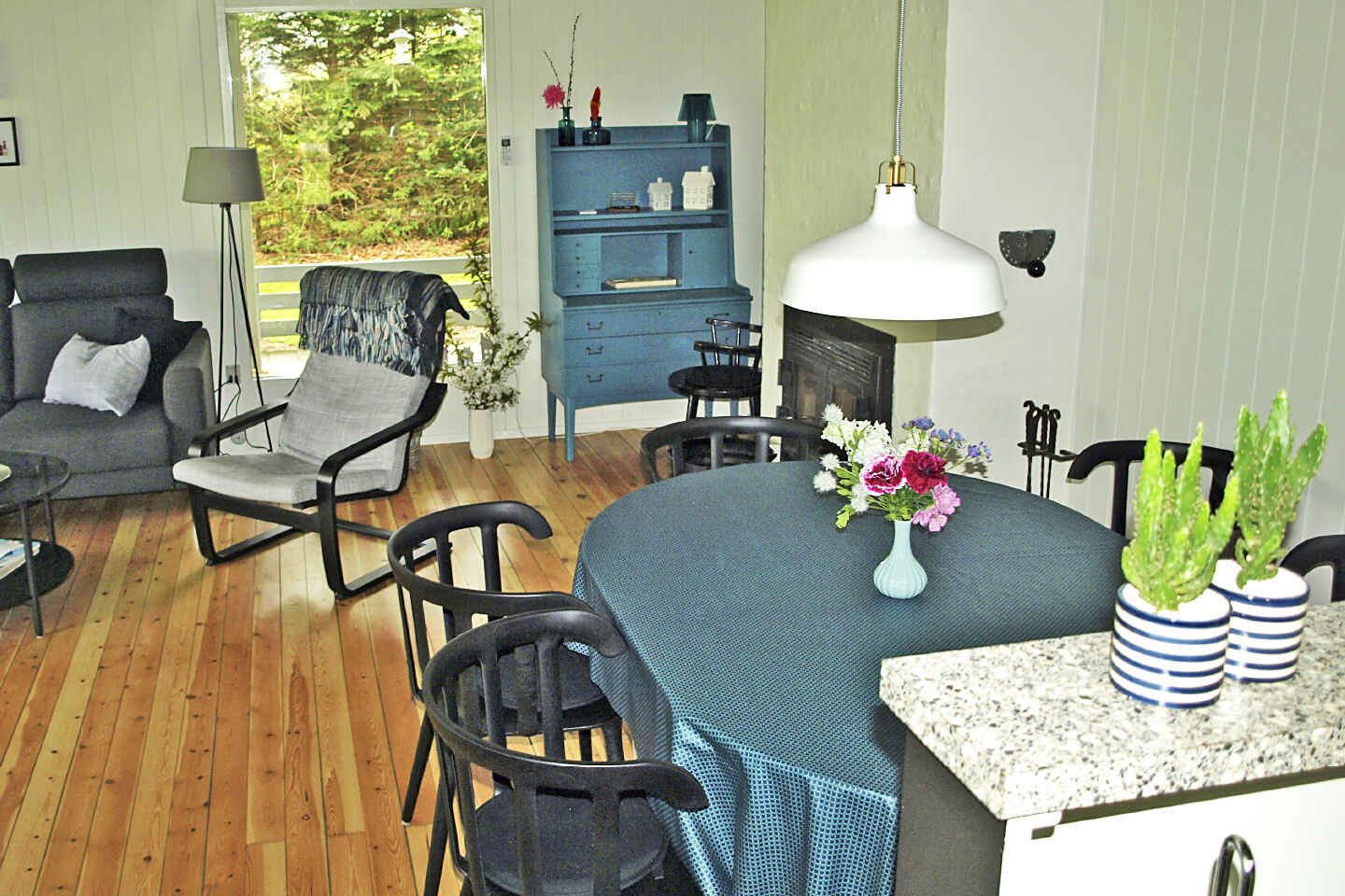 Schönes Ferienhaus mit überdachter Terrasse auf einem großen Grundstück. Vom Haus sind es nur 400 Meter zum Strand. Das Haus ist schön eingerichtet und bietet Platz für 6 Personen. Vom Wohnzimmer aus haben Sie direkten Zugang zum Garten.
