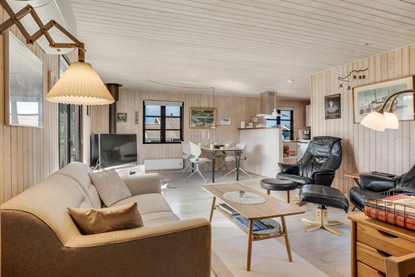 Dieses gepflegte Ferienhaus liegt in der schönen Dünenlandschaft von Lild Strand. Die großen Fenster...